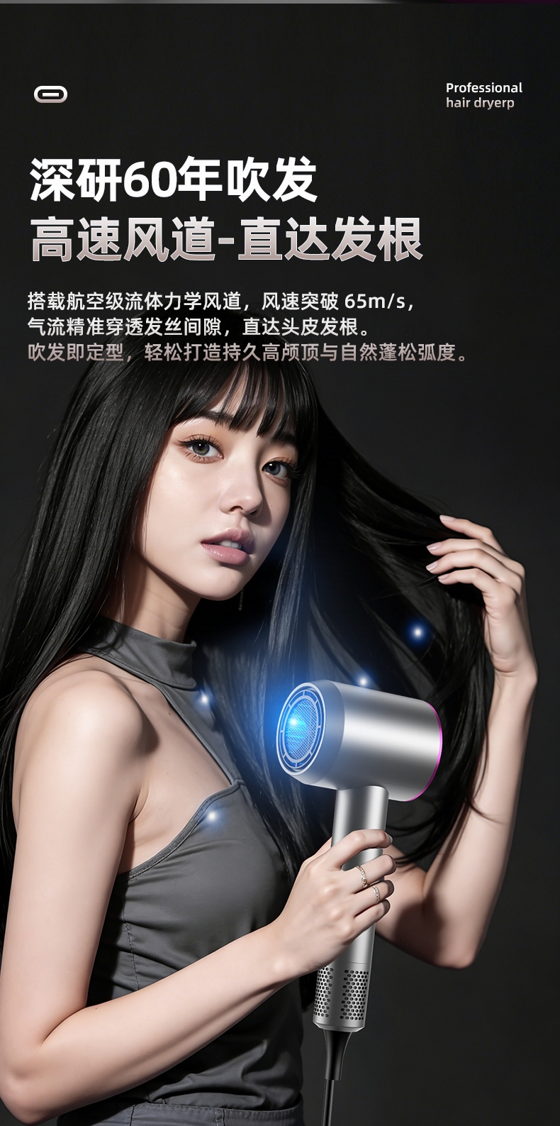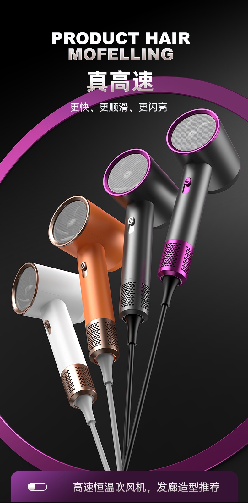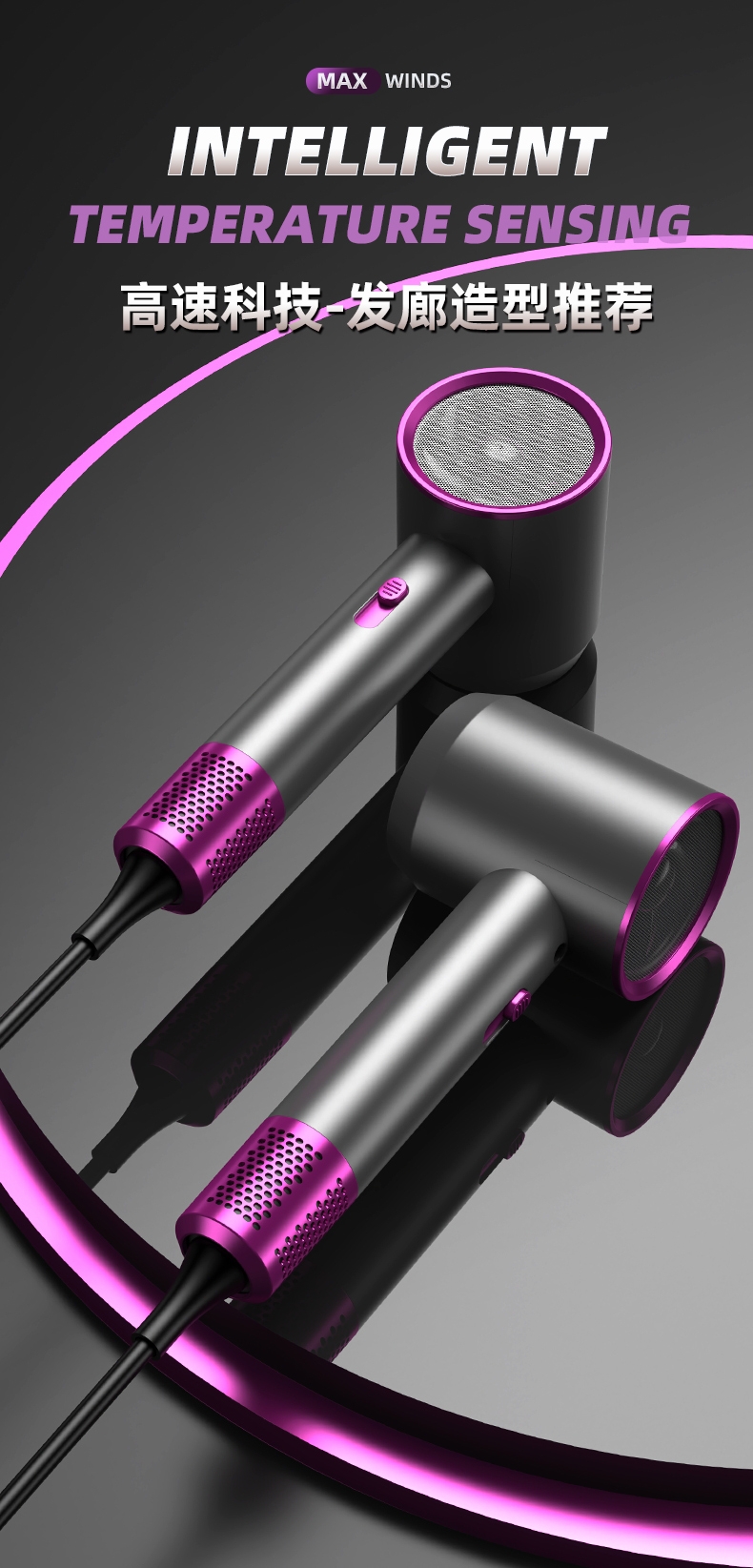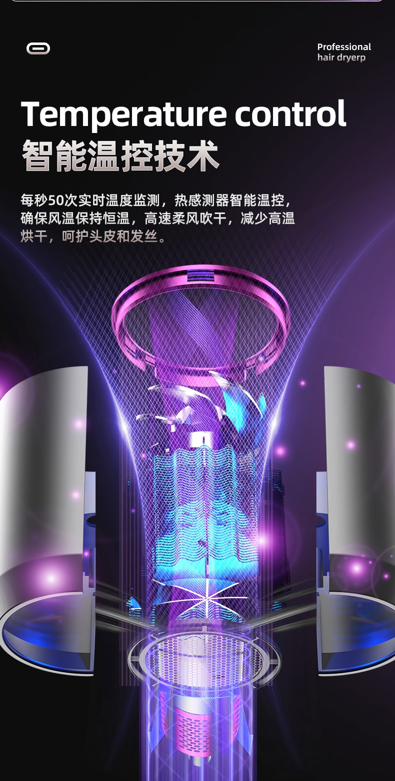 双杯蓝光千亿负离子护发;大风力轻音;智能温控电子元件保护更安全