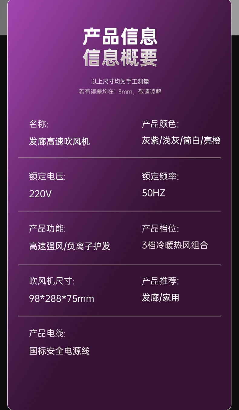 功能:国际电压,冷热风,护发,速干