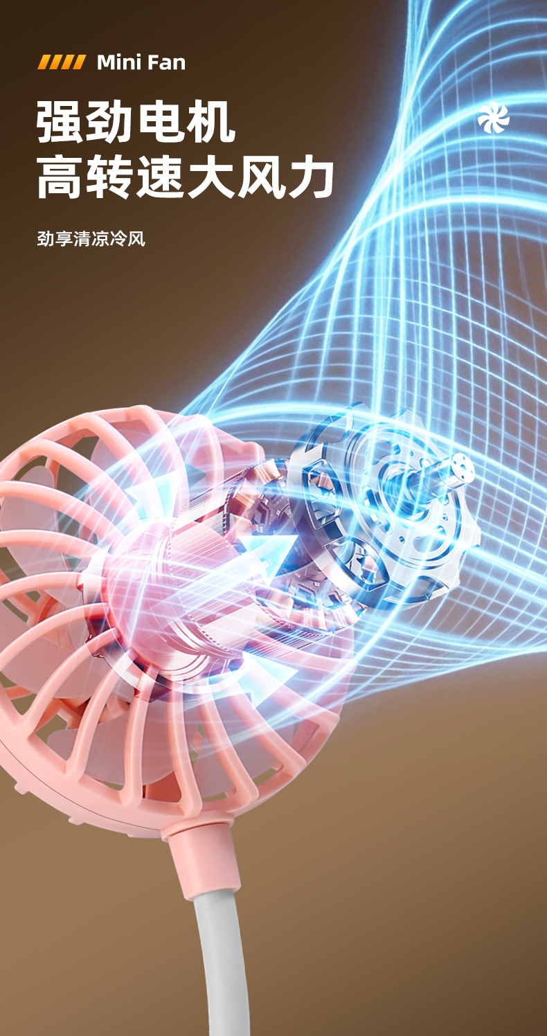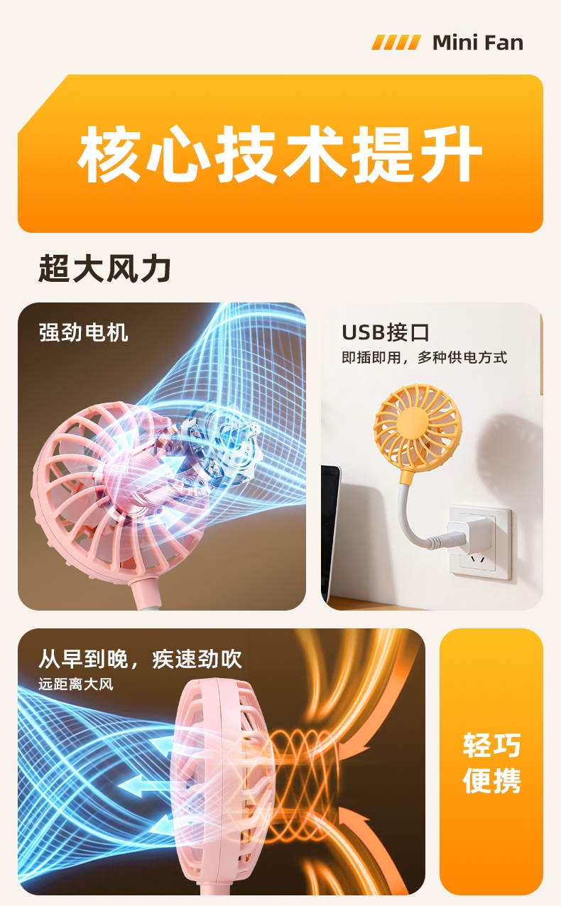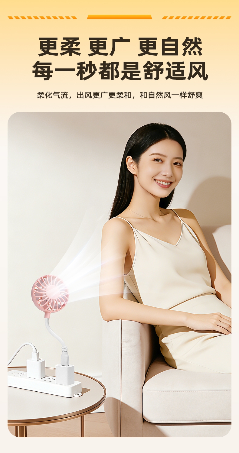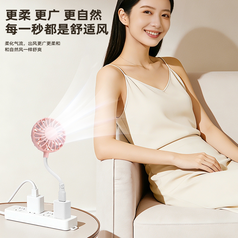 七扇叶大风力USB便携小风扇;强劲电机风速高风量大;360°软管可调节