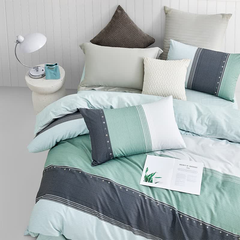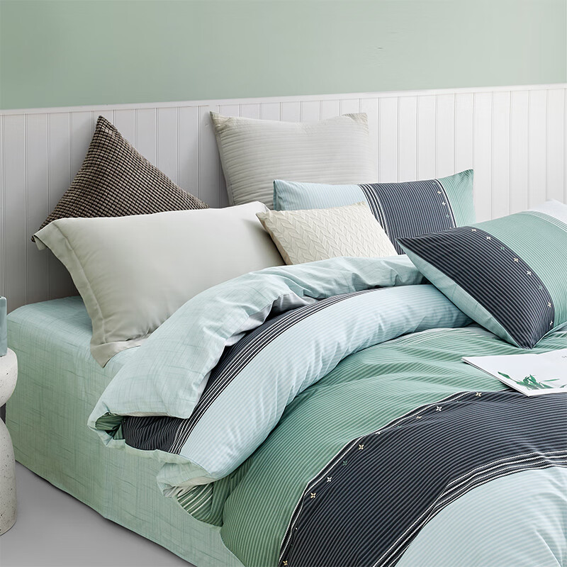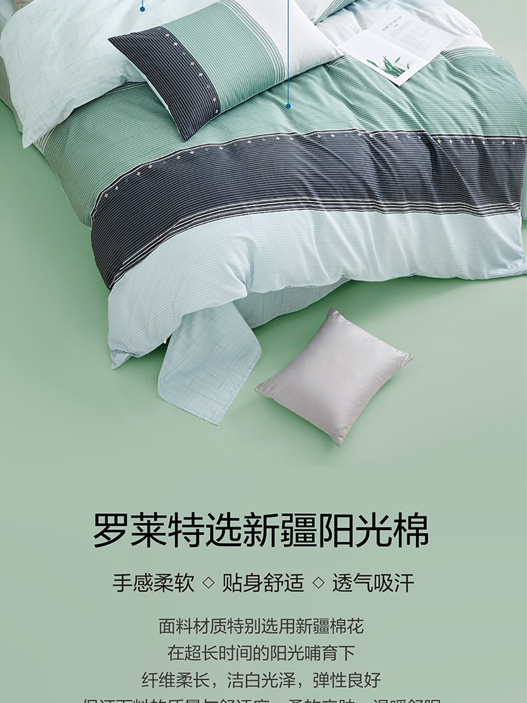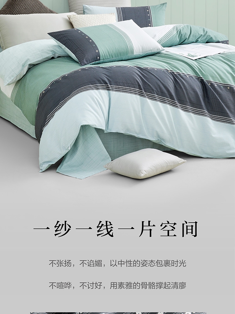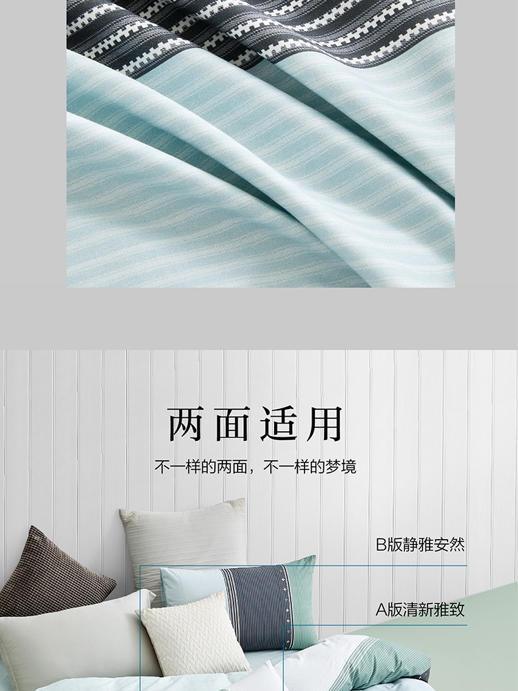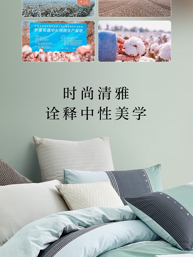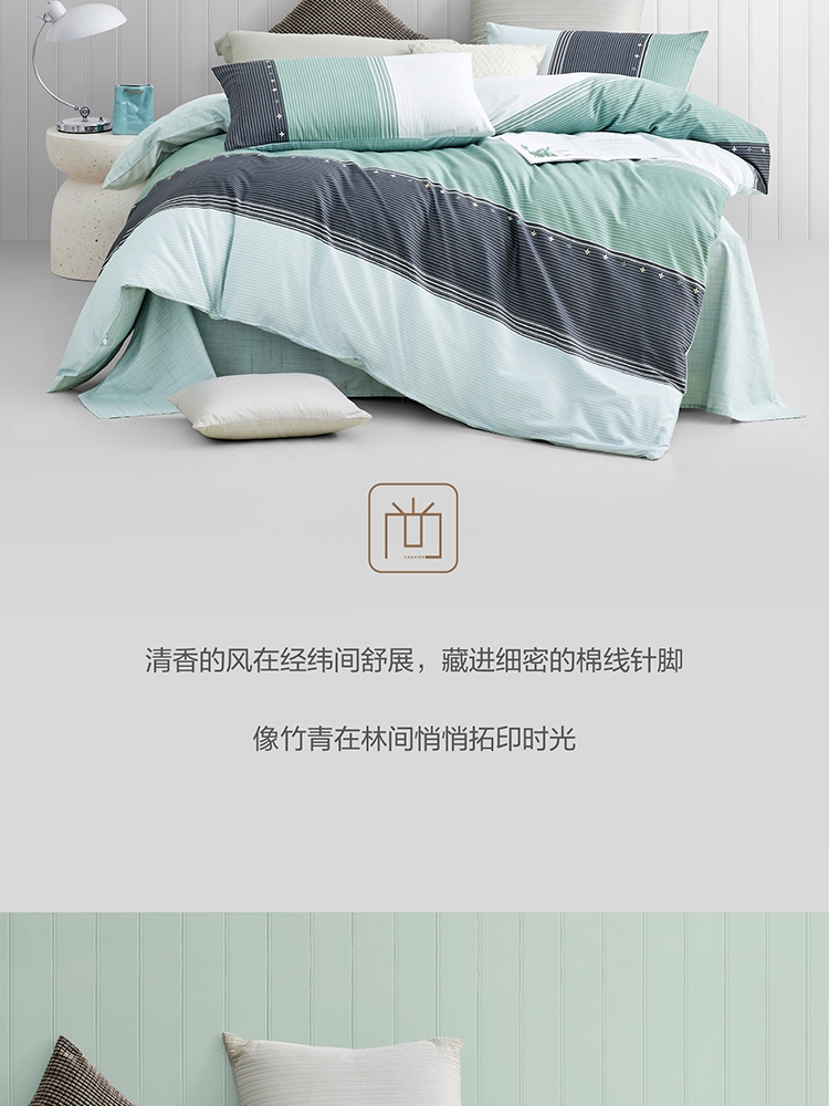 以清新的浅绿色为主色调;辅助色:搭配灰色和白色,增加了整体的层次感和现代感;点缀元素:在条纹中加入了小圆点作为点缀,增加了设计