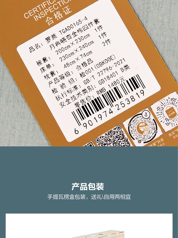 罗莱家纺 月冉晓杏全棉四件套TGAD0165-4
