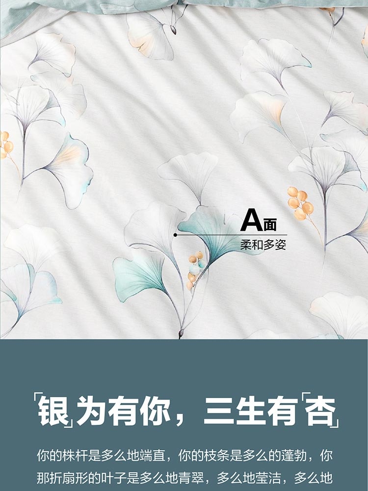 银(因)为有你,三生有杏(幸)”;银杏叶的花语是纯情,朴实无华却又璀璨夺目。;100%棉