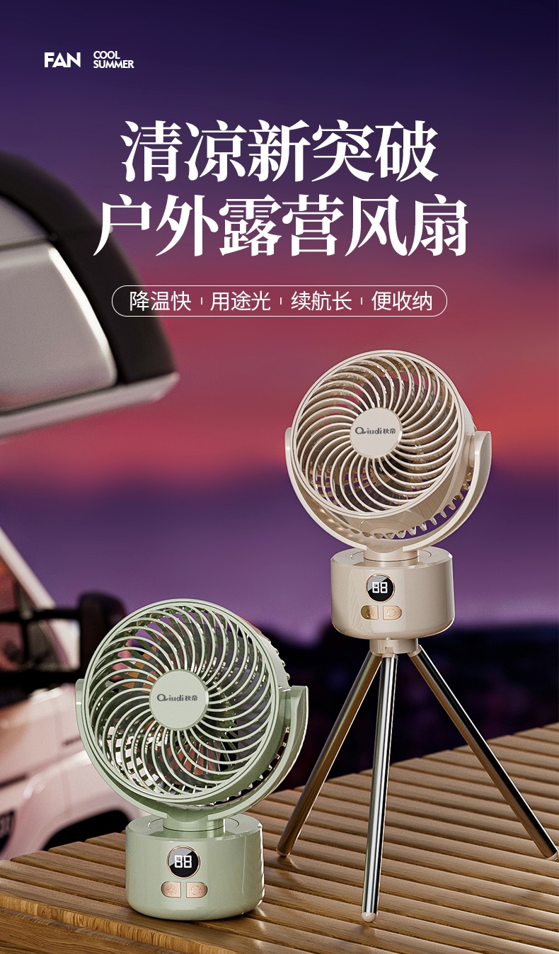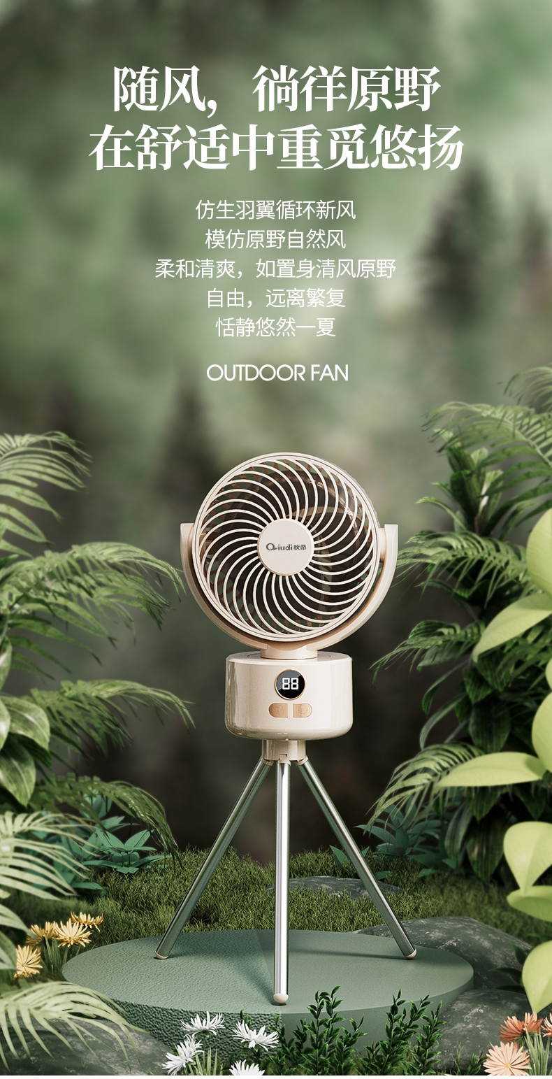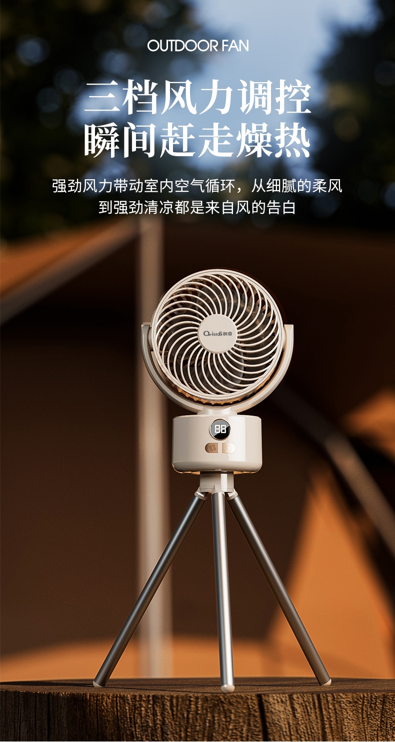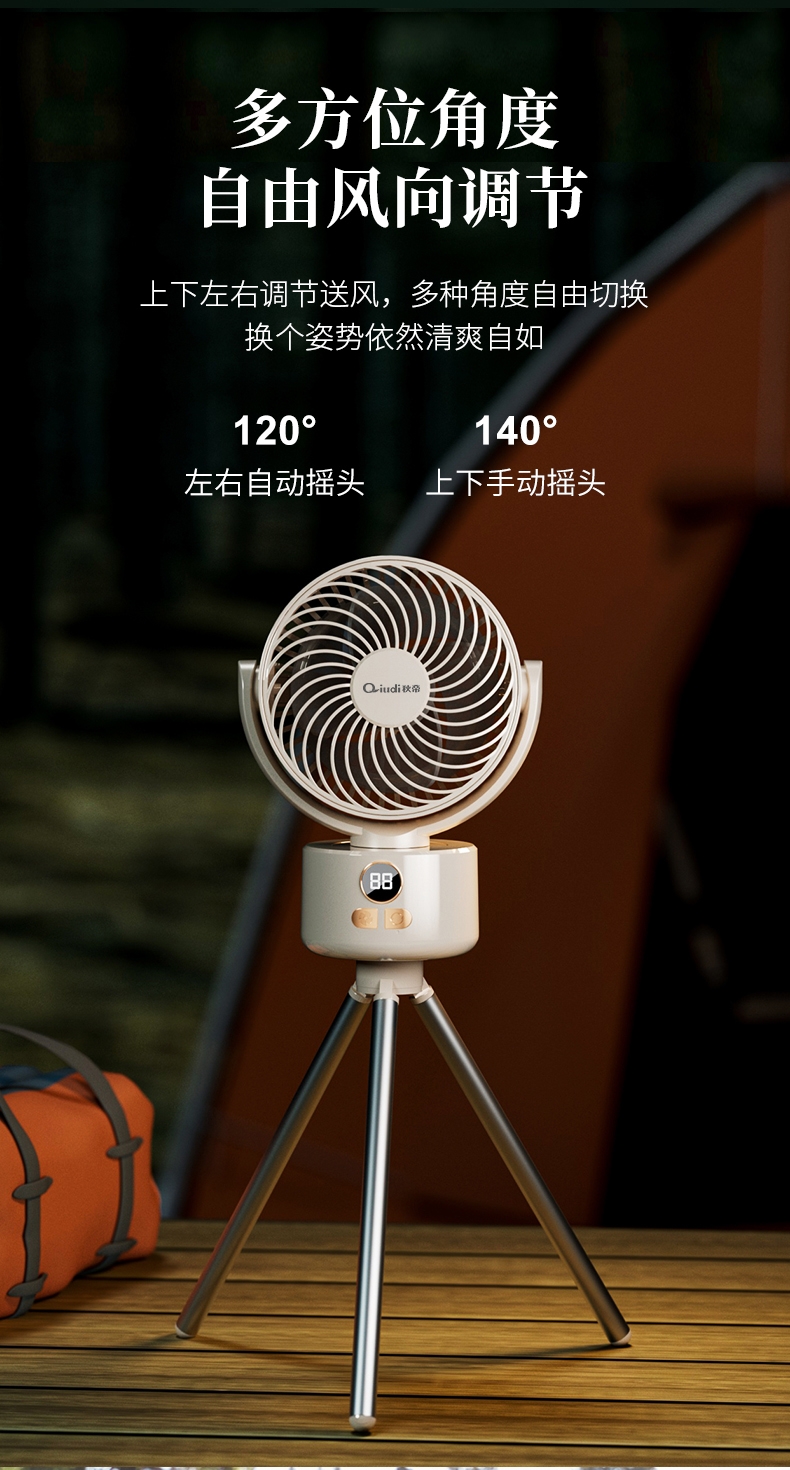 秋帝 露营风扇支架循环空气扇摇头风扇QD-CC119