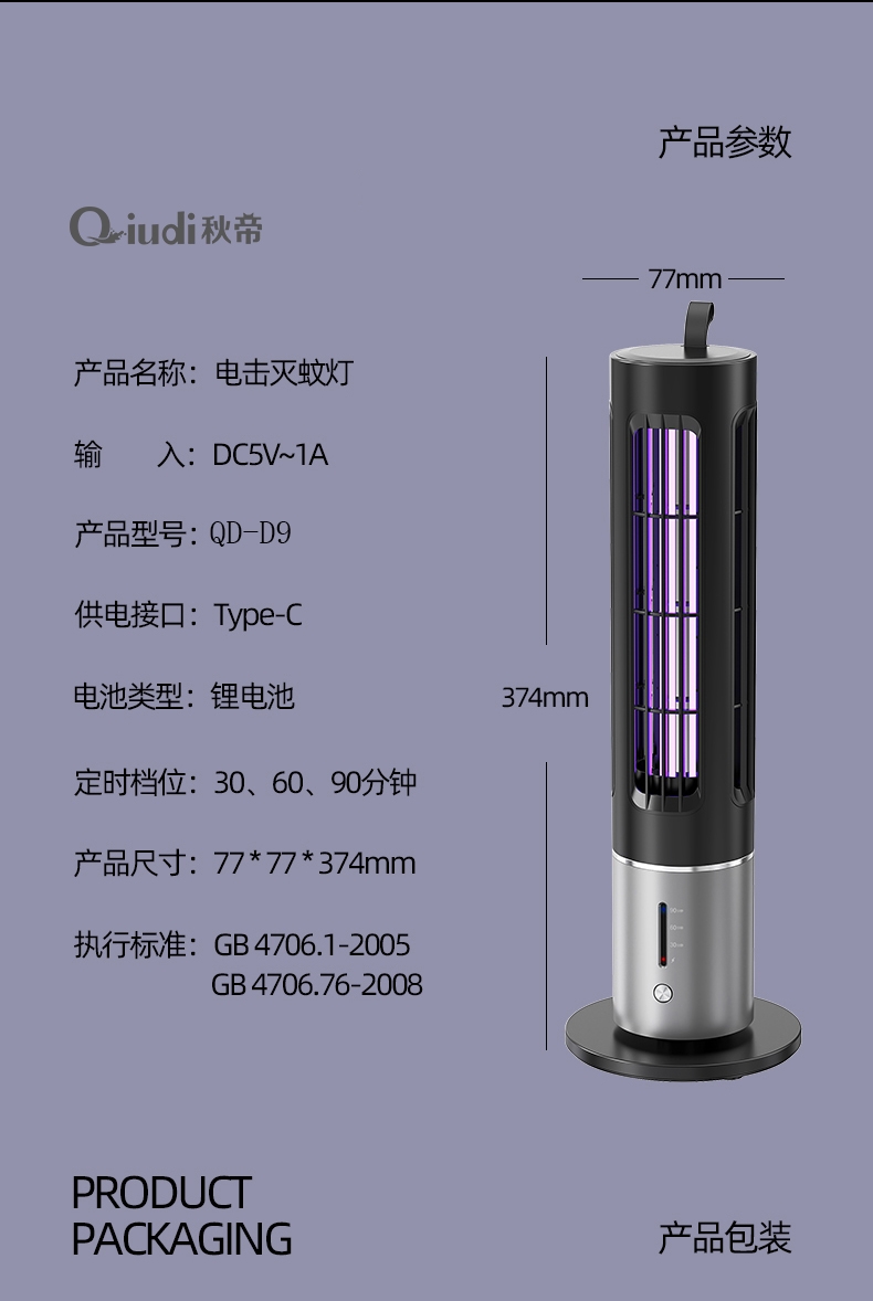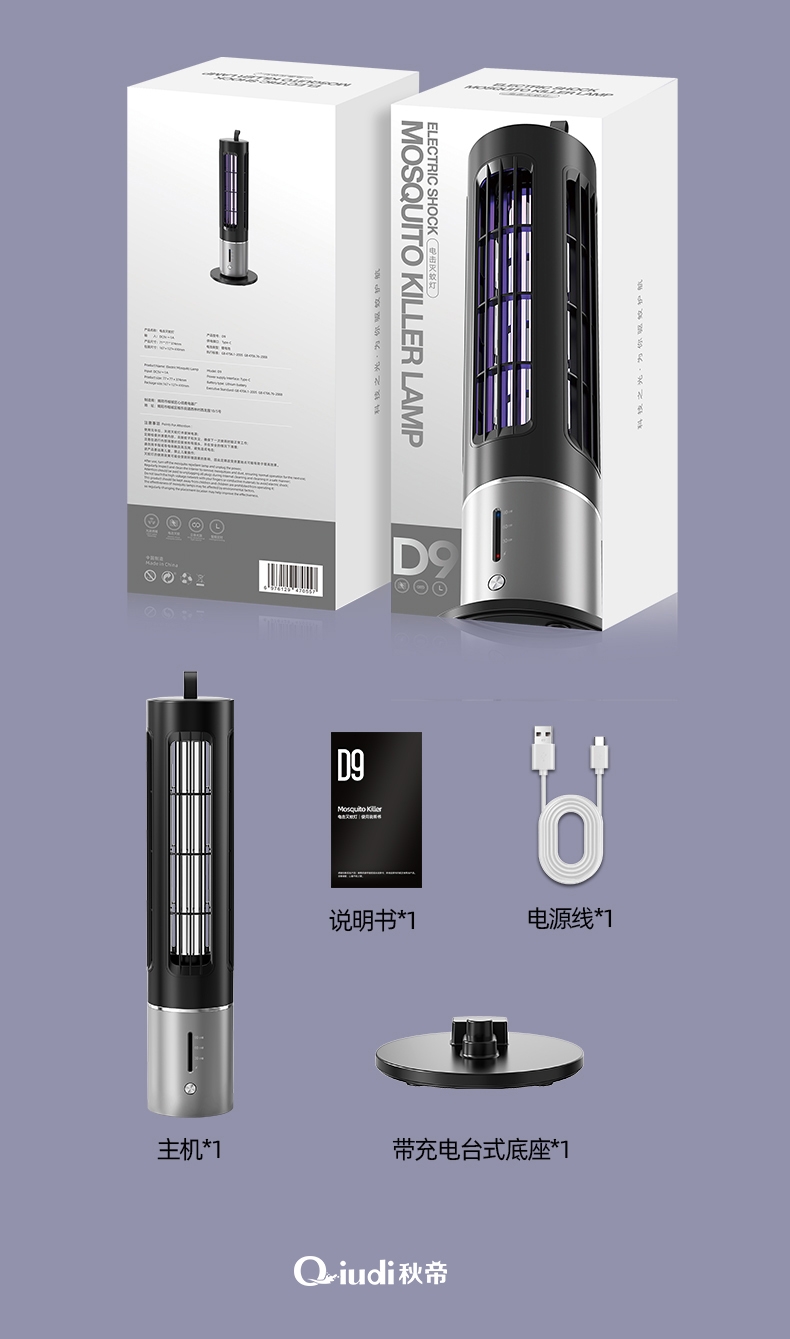 秋帝 露营电击灭蚊灯家用电击诱蚊灯QD-D9