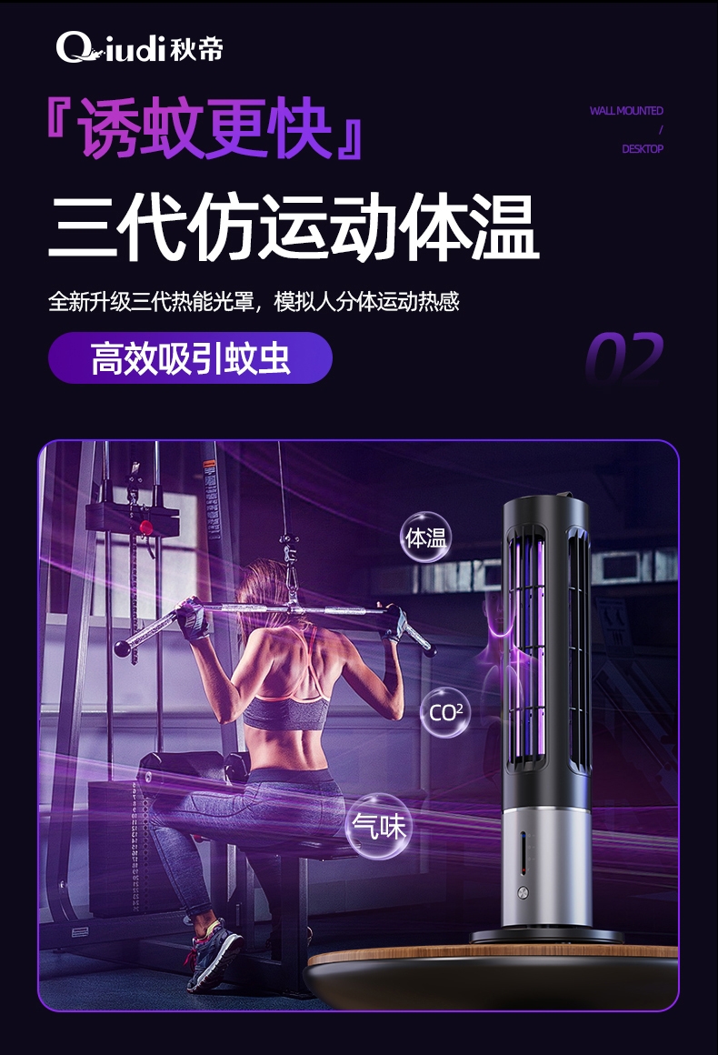 功能:定时/蓄电/仿光学体温呼吸气息诱蚊