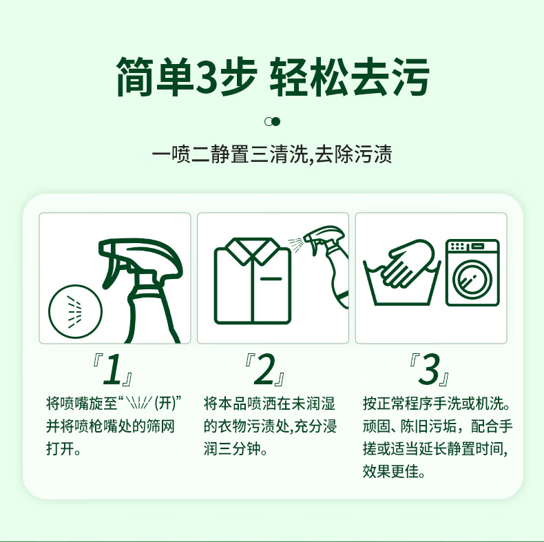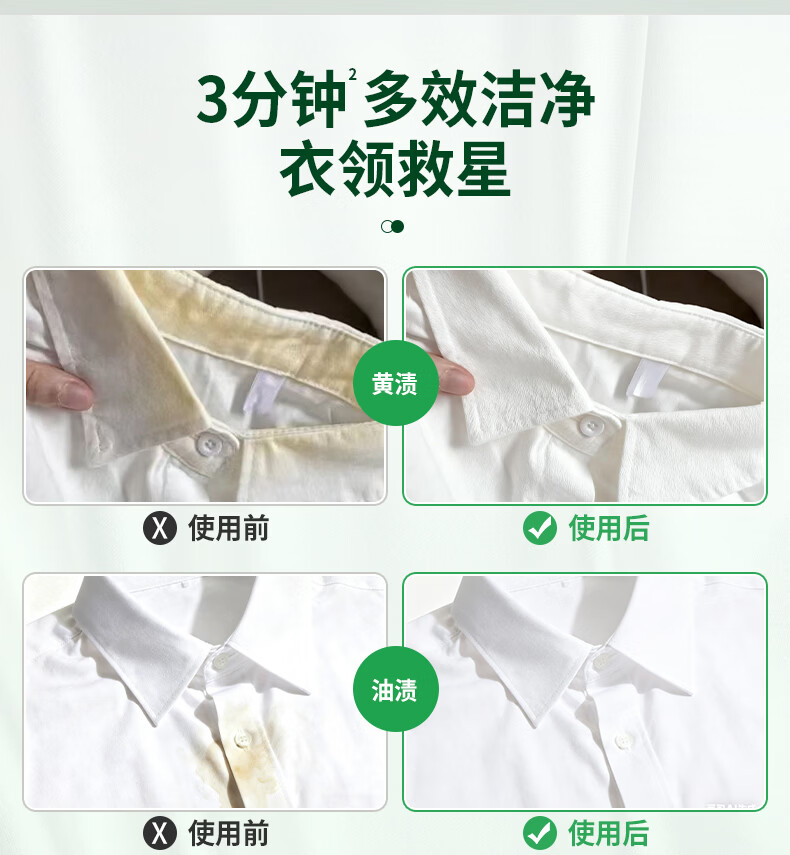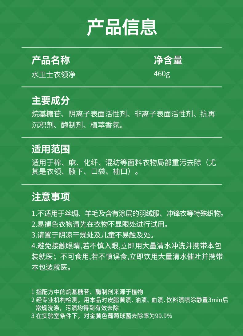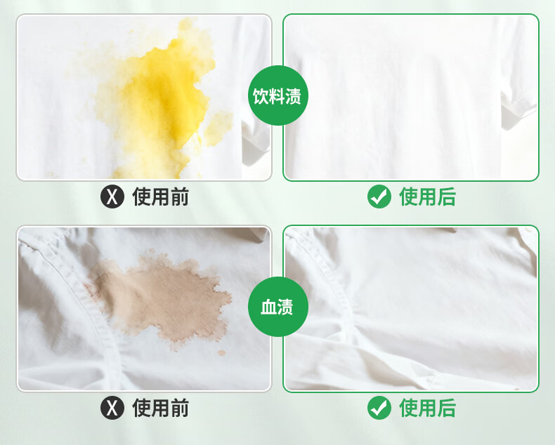 适用场景:适用于汗渍、油渍、血渍、饮料渍等日常污渍