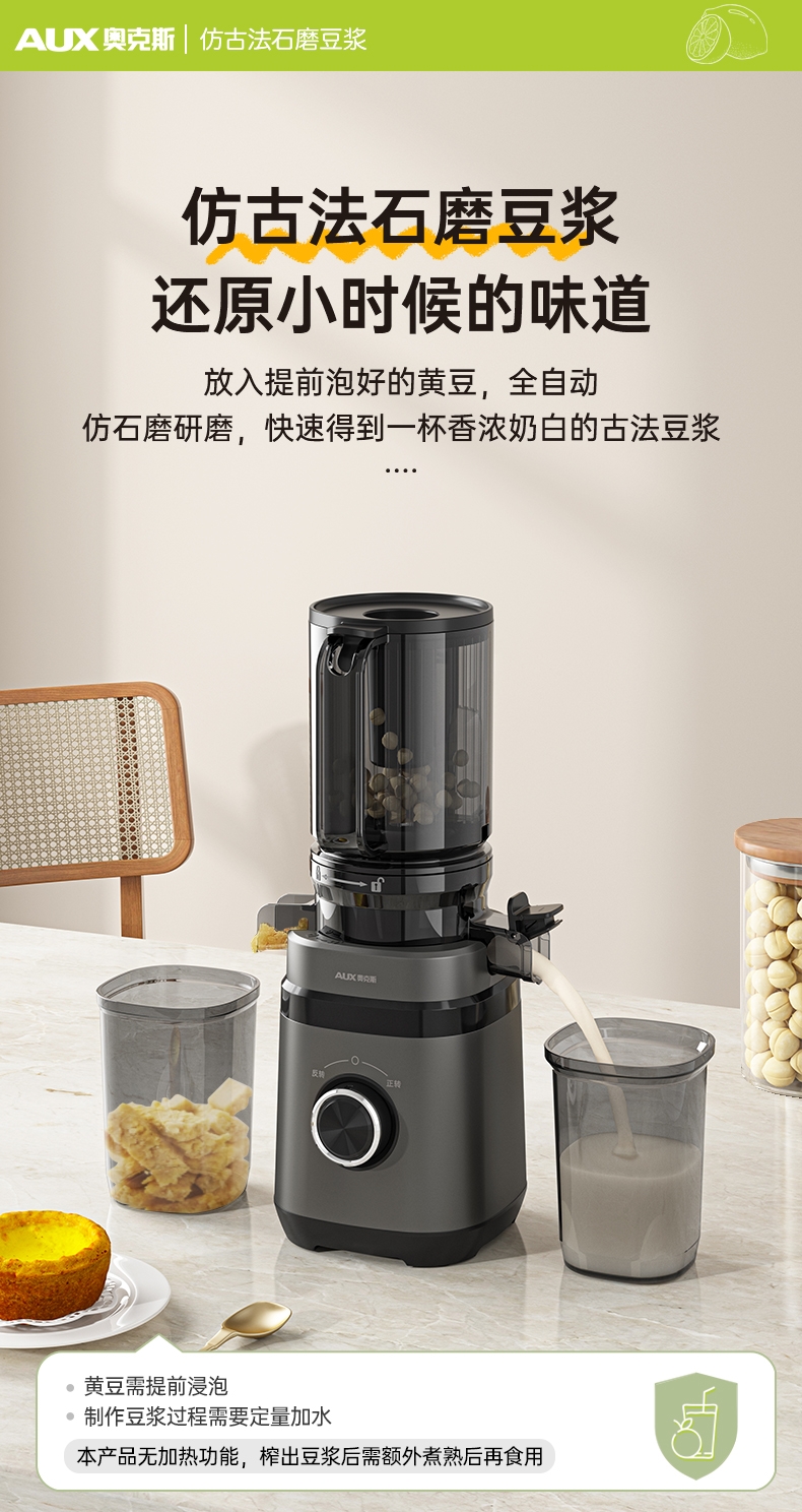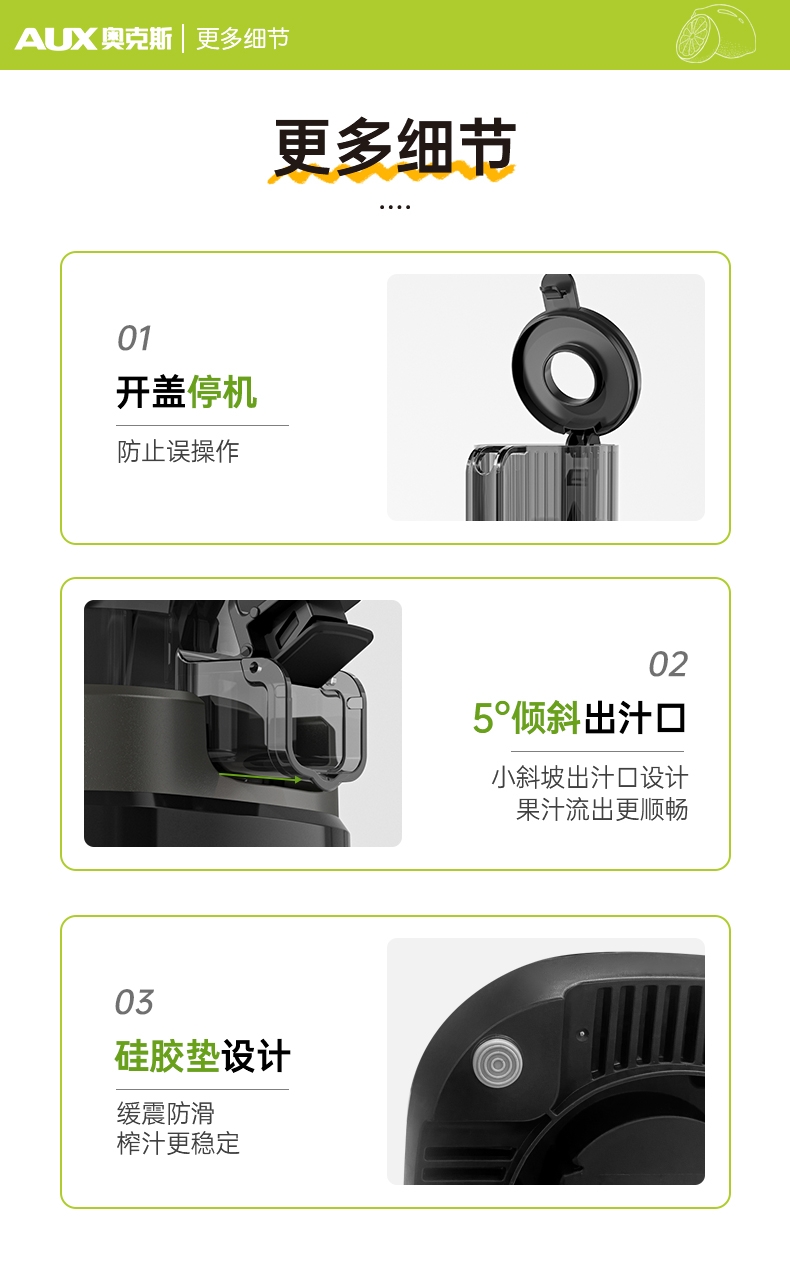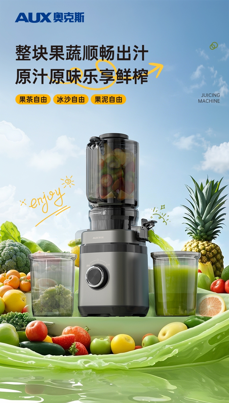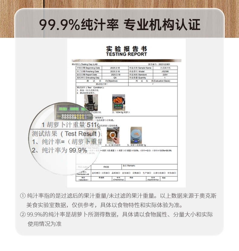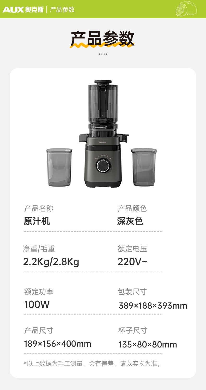 整块果蔬顺畅出汁,原汁原味乐享鲜榨;渣汁自动分离,无需手动过滤;积木式易拆装,安装清洗轻松无压力