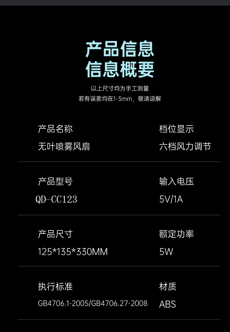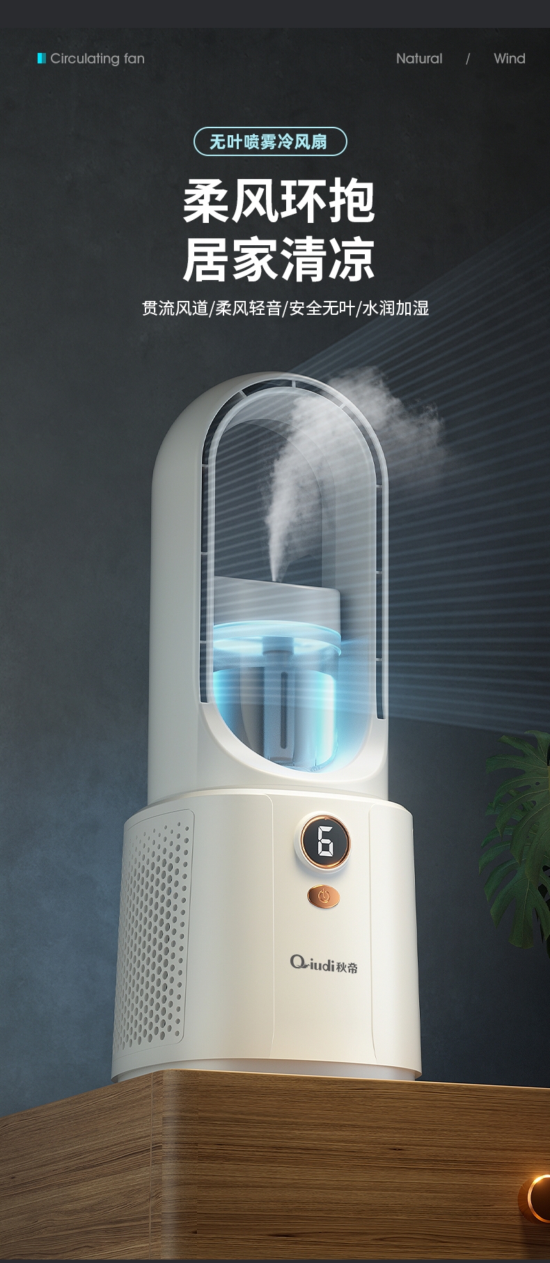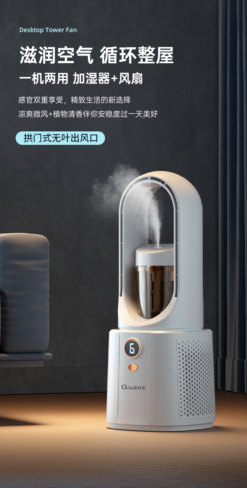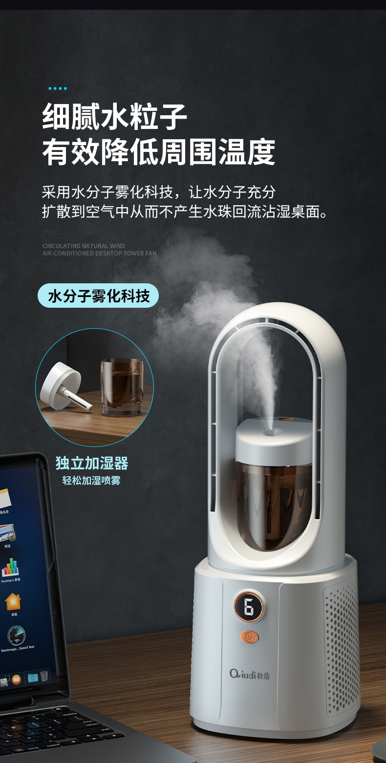 秋帝 桌面无叶风扇加湿喷雾循环空气扇QD-CC123