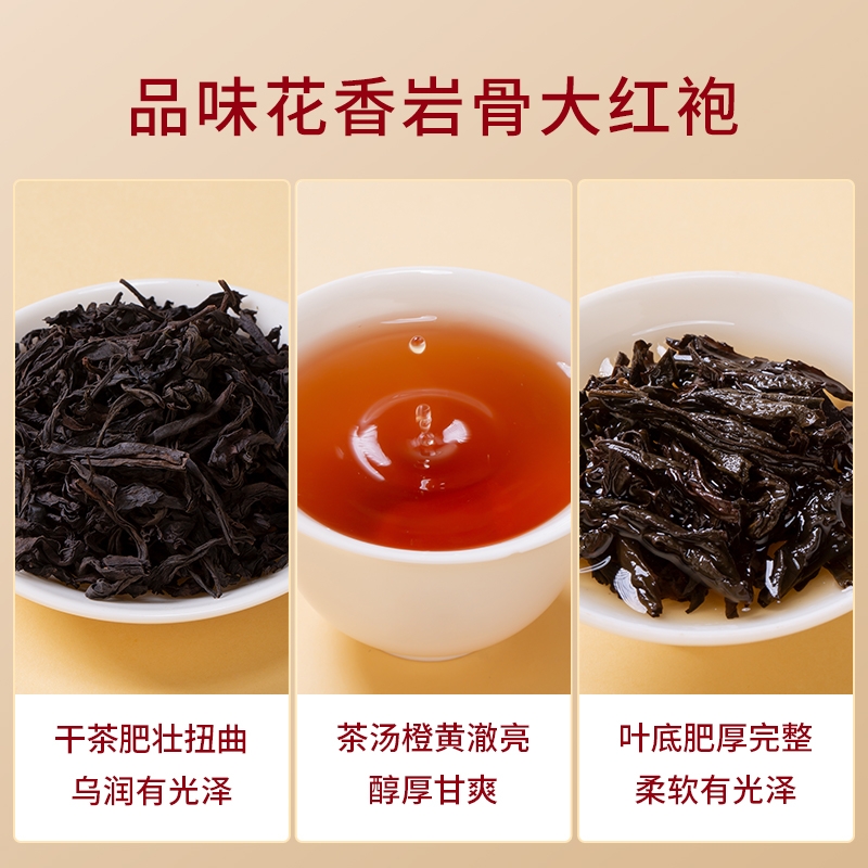 品味高香岩韵,香郁耐泡,老茶客心头好;;汤色橙黄明亮。滋味醇厚不苦涩,花香明显;;喜悦红色搭配山岚手绘图案赏心悦目,自己喝送人都合适