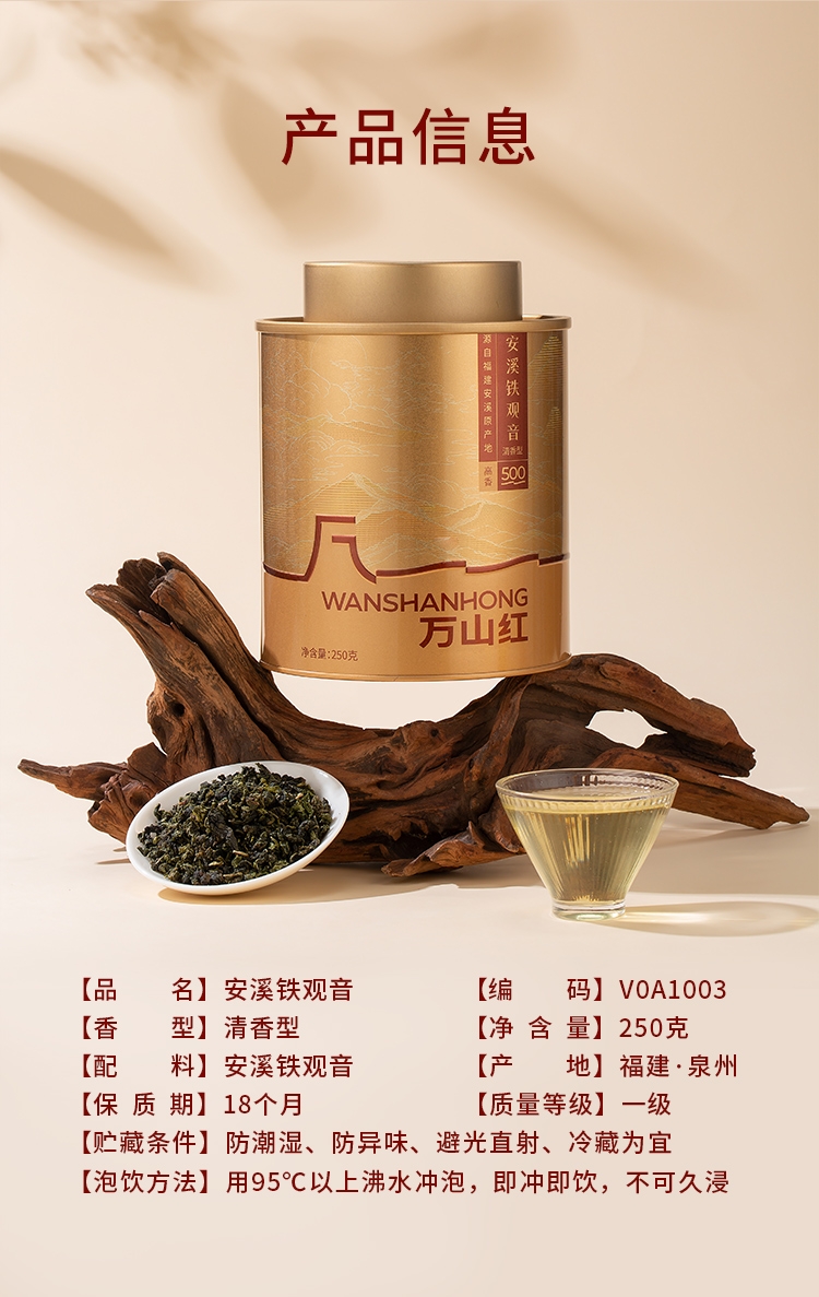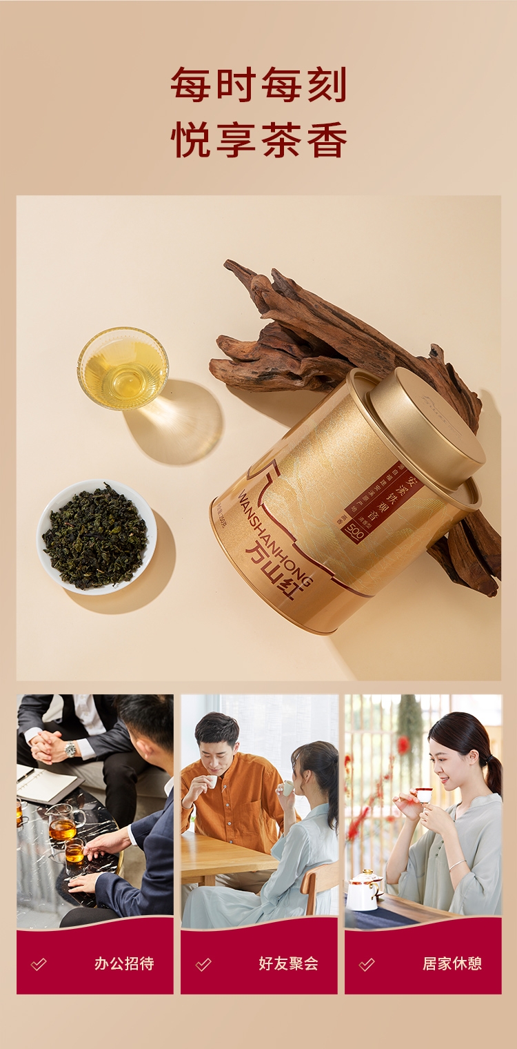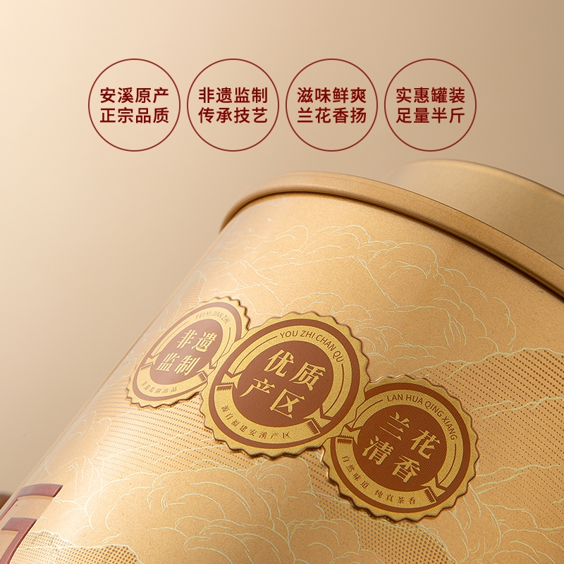 茶汤金黄透亮;;叶片油亮, 柔软有光泽;;金色罐装 ,手绘设计,高级有质感;
