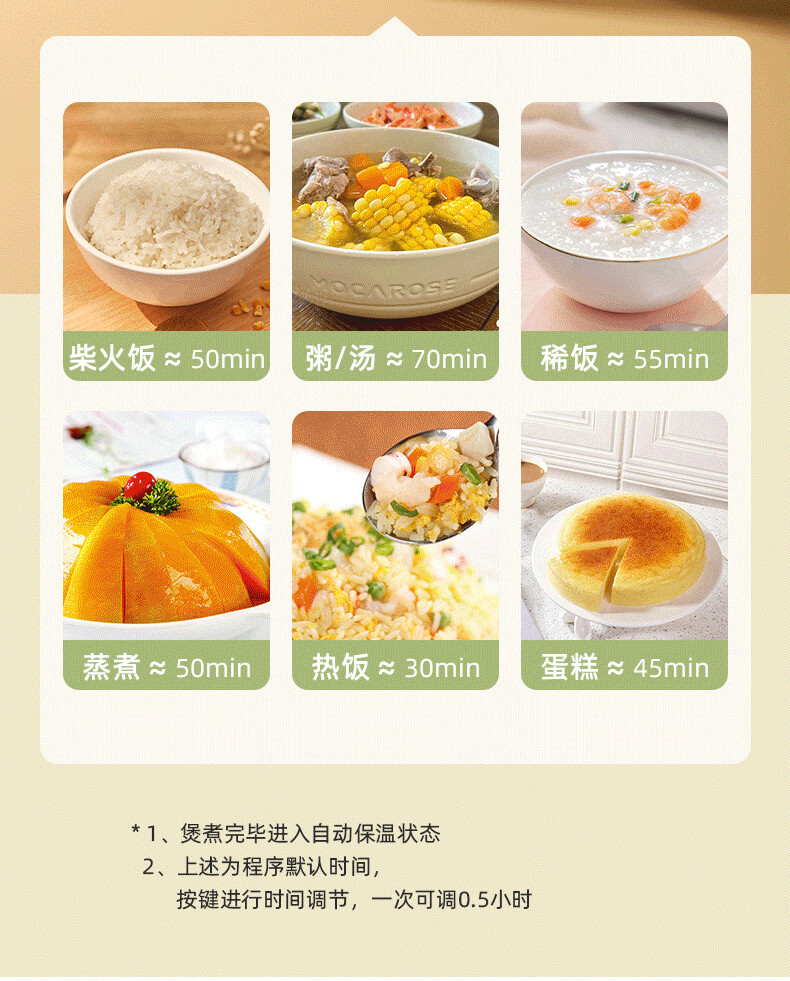 电饭煲多功能:快速饭,柴火饭,热饭,煮粥,稀饭,煮饭