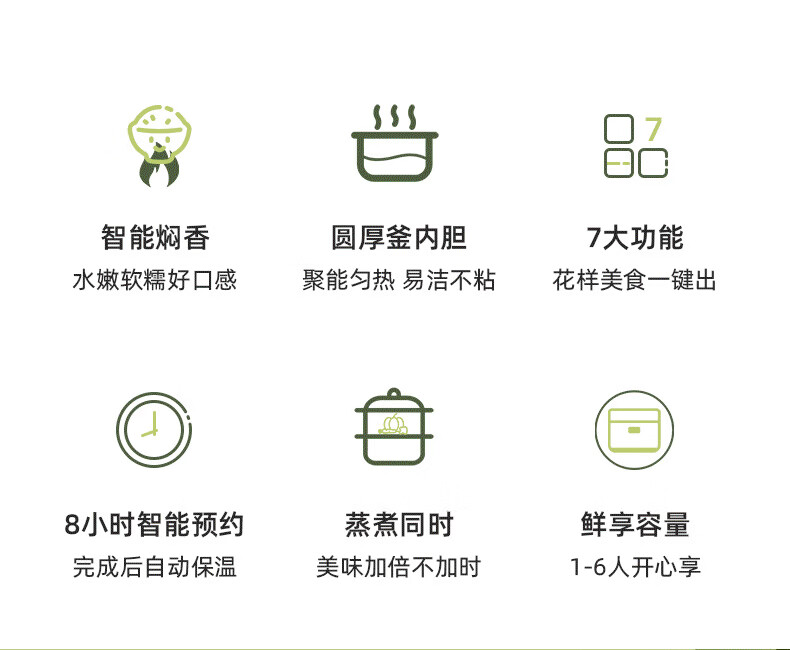 高效聚能发热盘加热,均匀高效;触控式操作,美味尽在指尖;8大功能,满足你日常生活所需;简约精致外观,为厨房增色