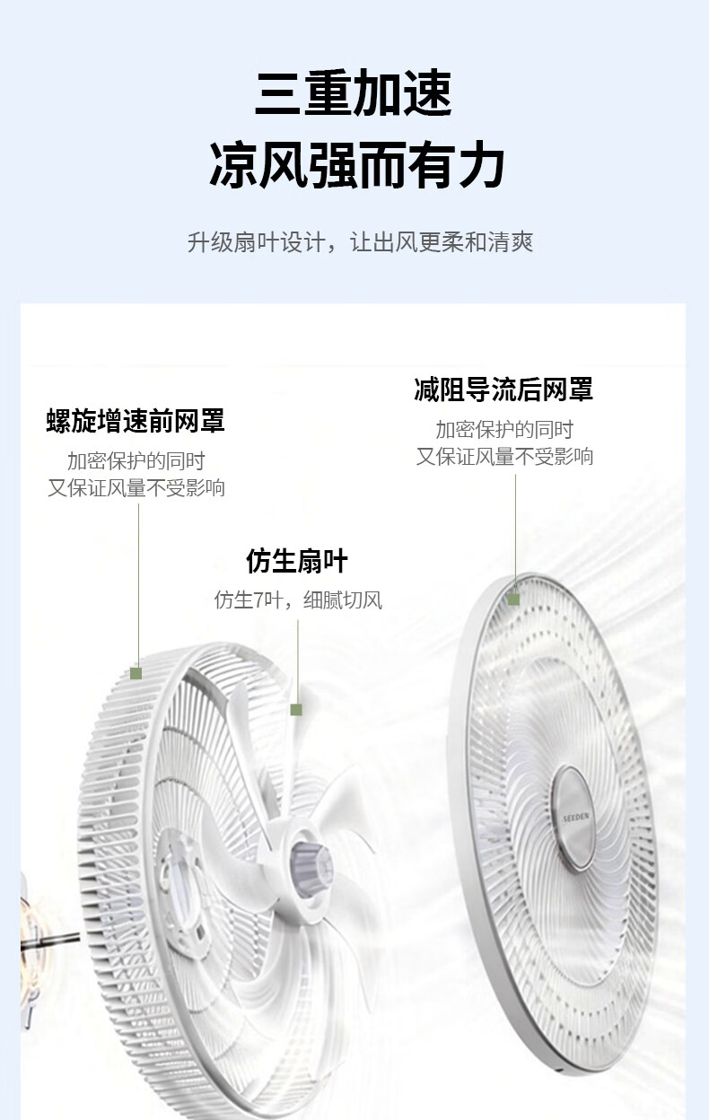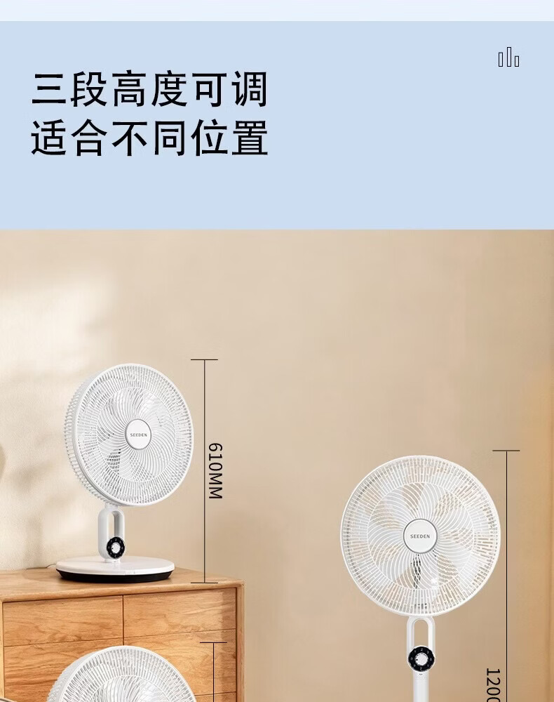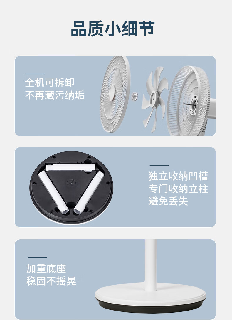 旋钮操作 ;前后网扇叶可拆卸;3合一台/立/地高度自由调节