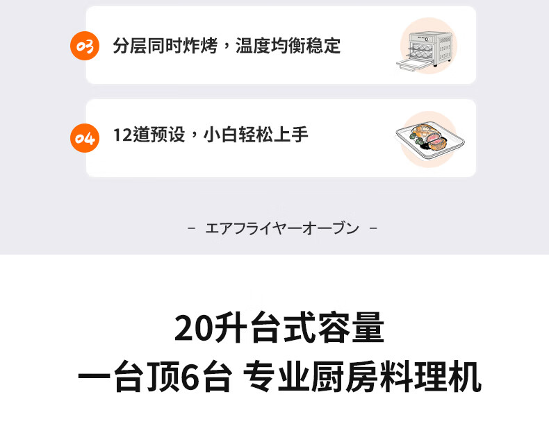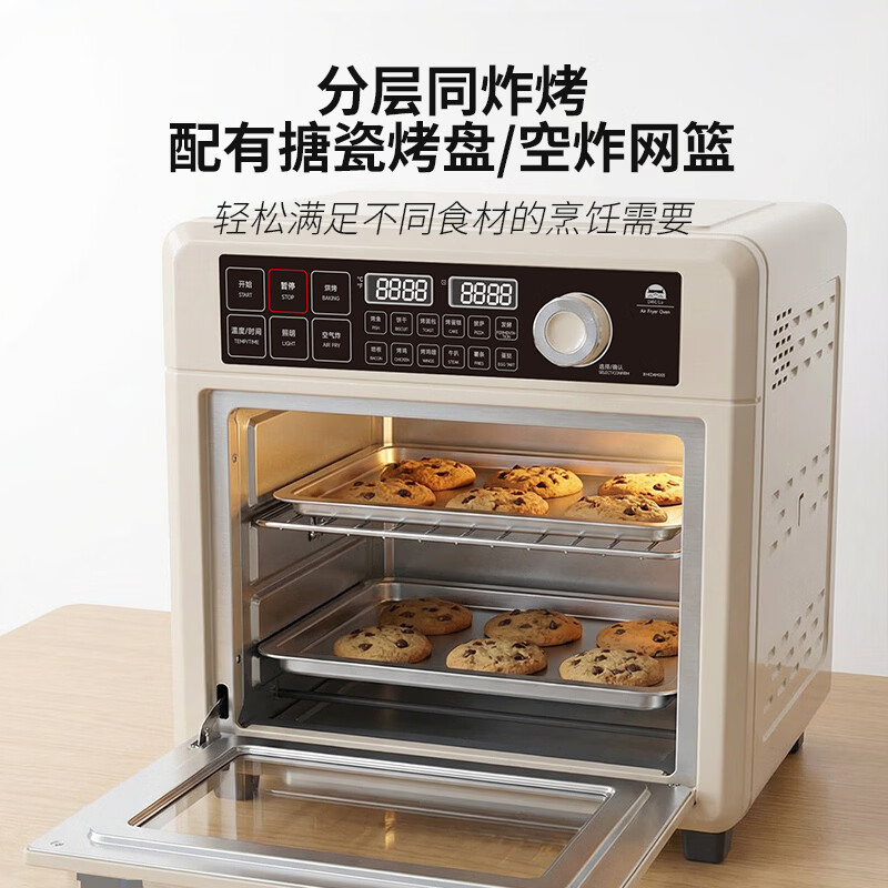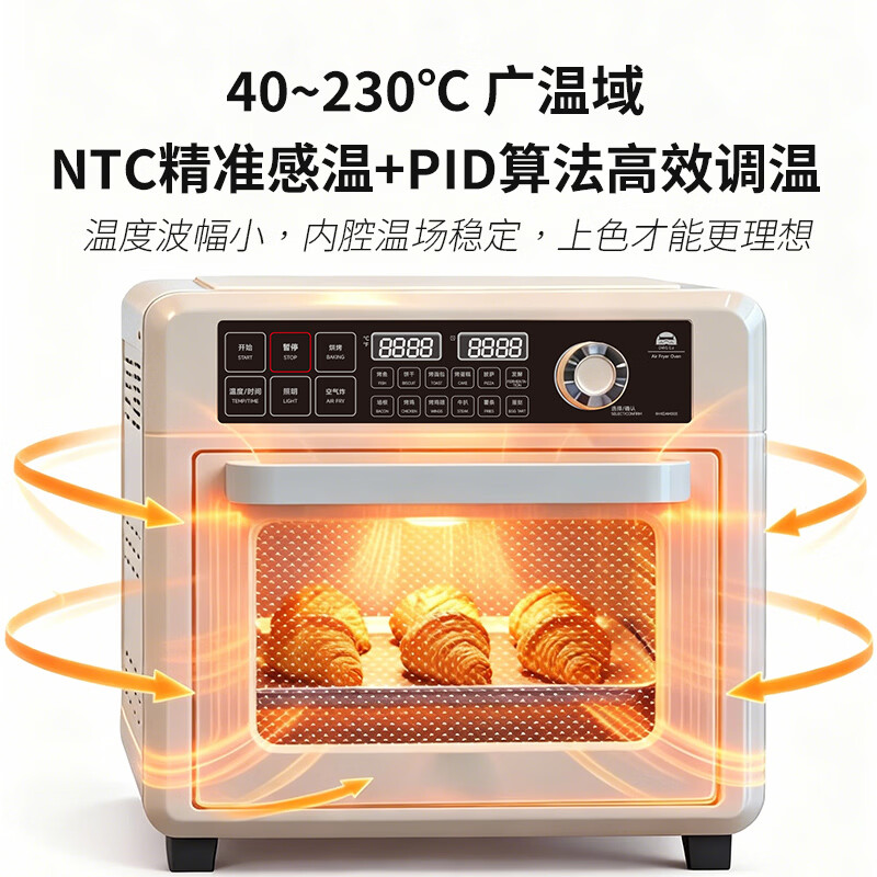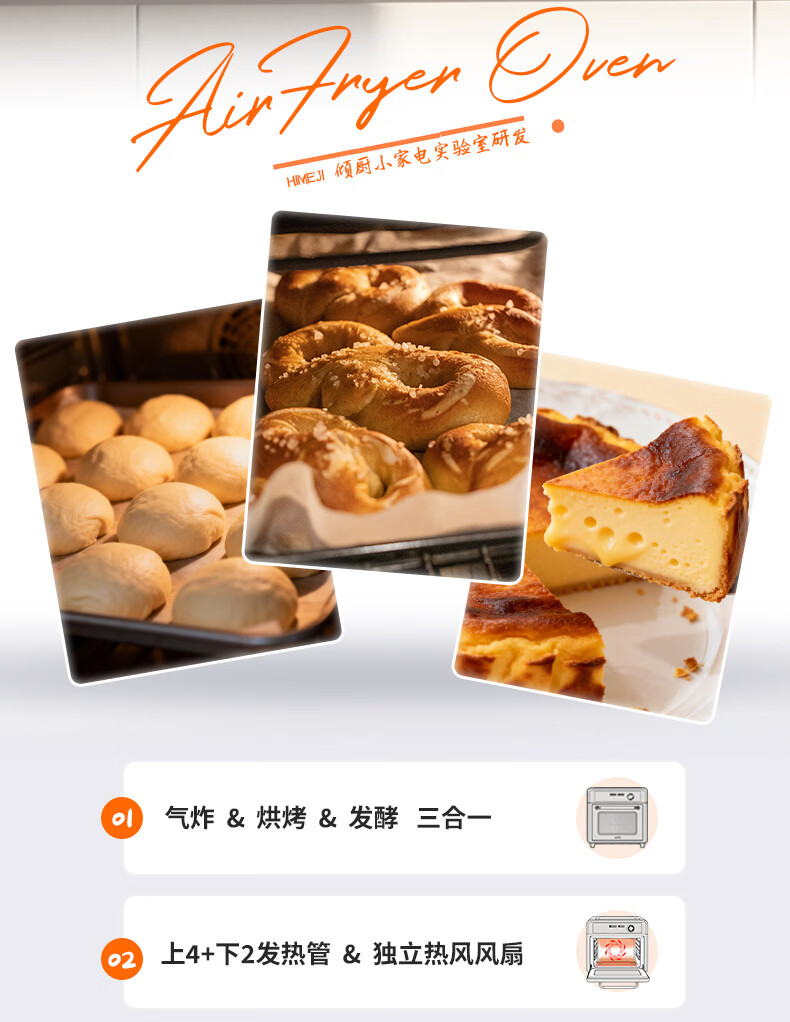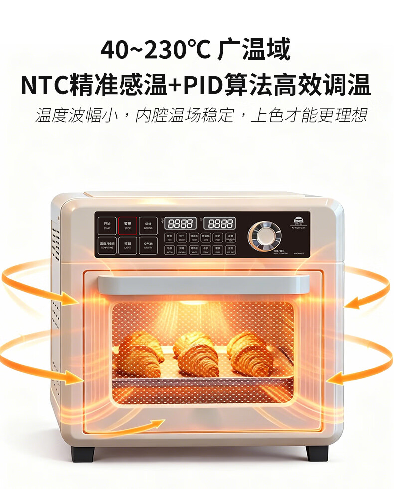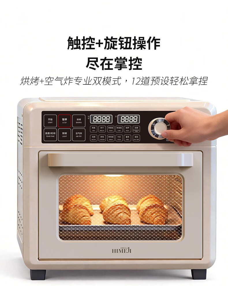 气炸&烘烤&发酵三合一;上4+下2发热管&独立热风风扇;12道预设,小白轻松上手