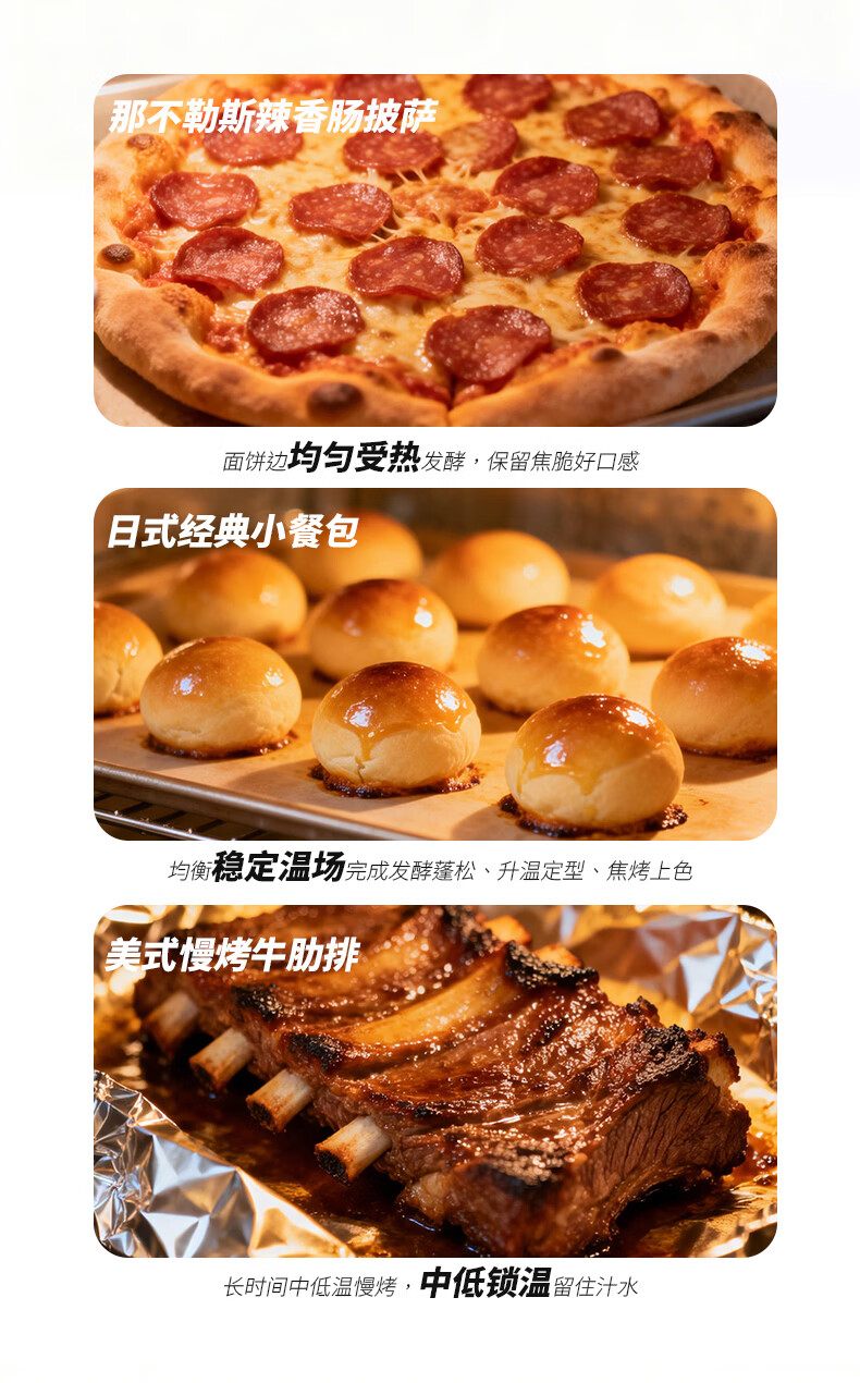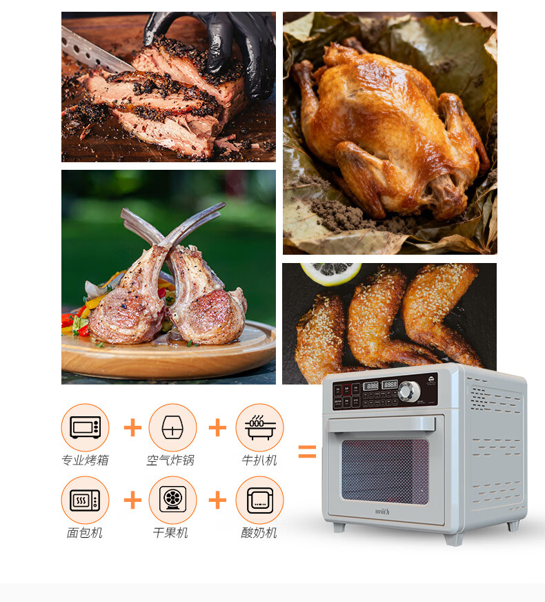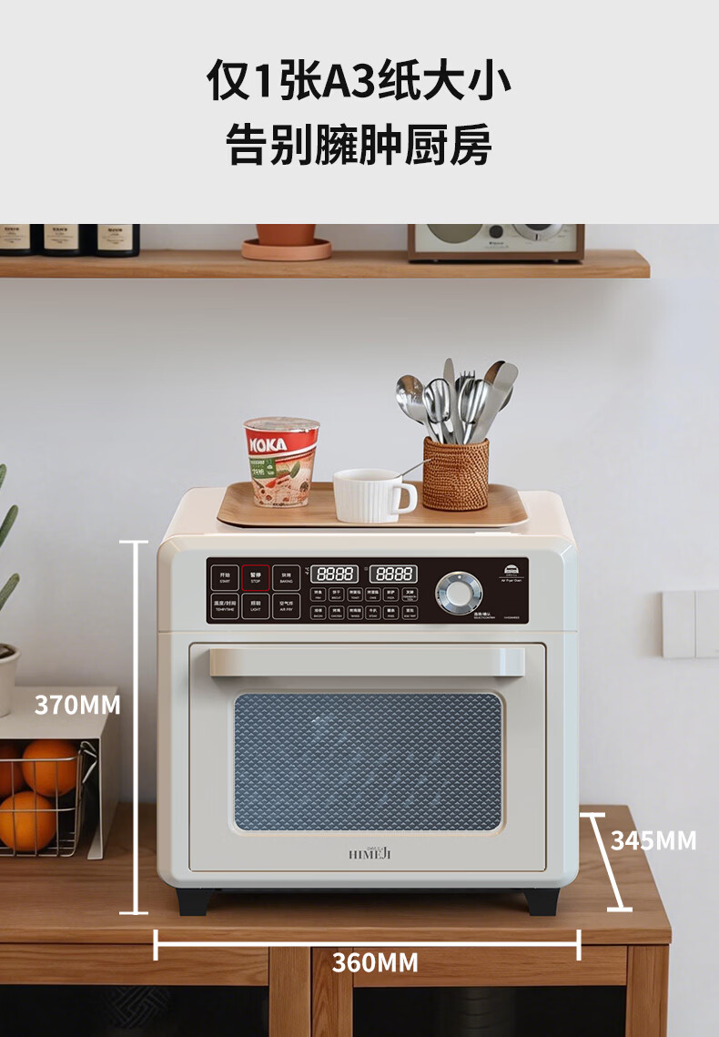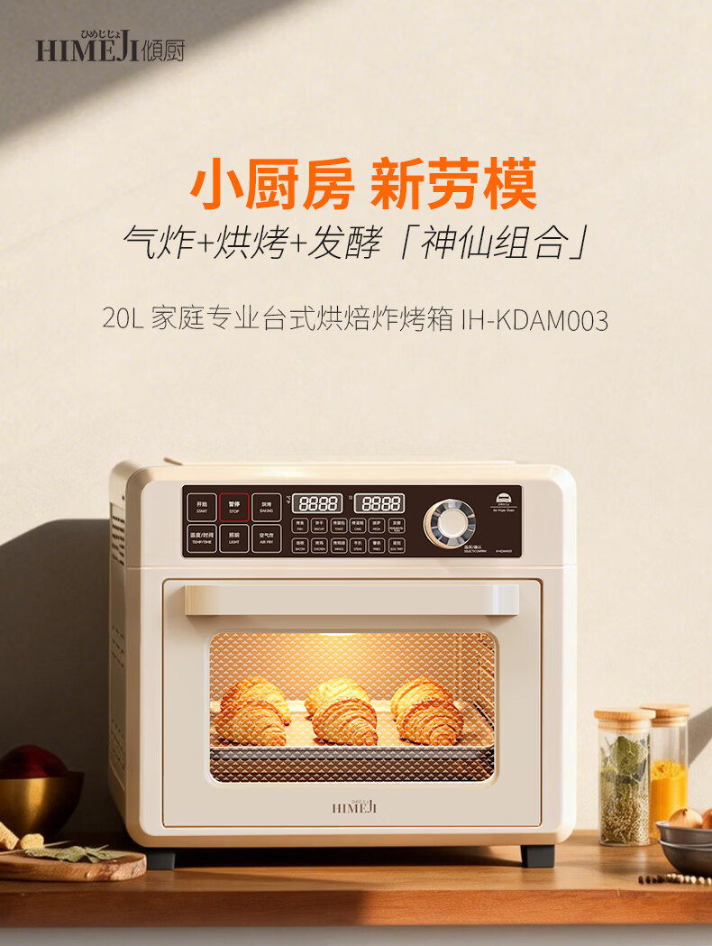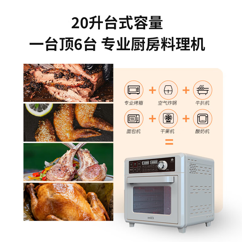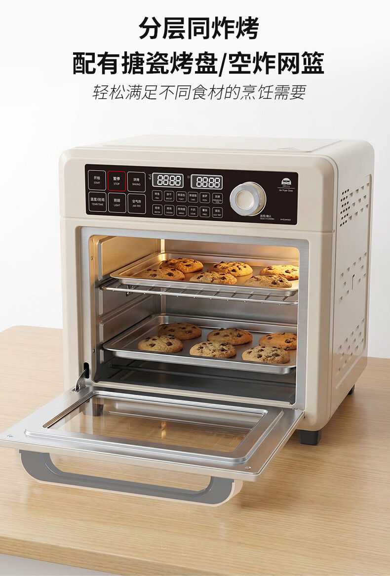 气炸&烘烤&发酵三合一;上4+下2发热管&独立热风风扇;12道预设,小白轻松上手