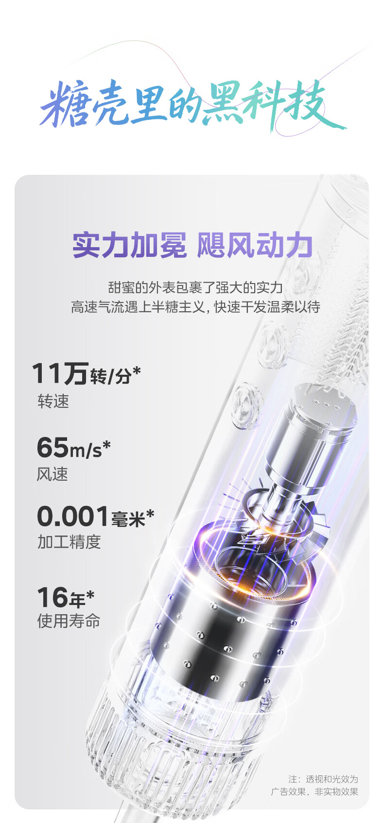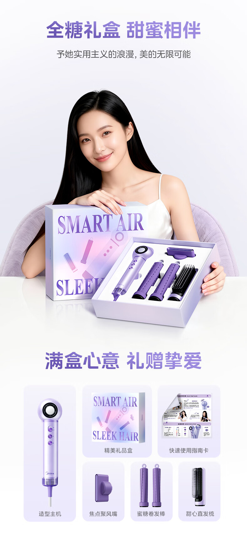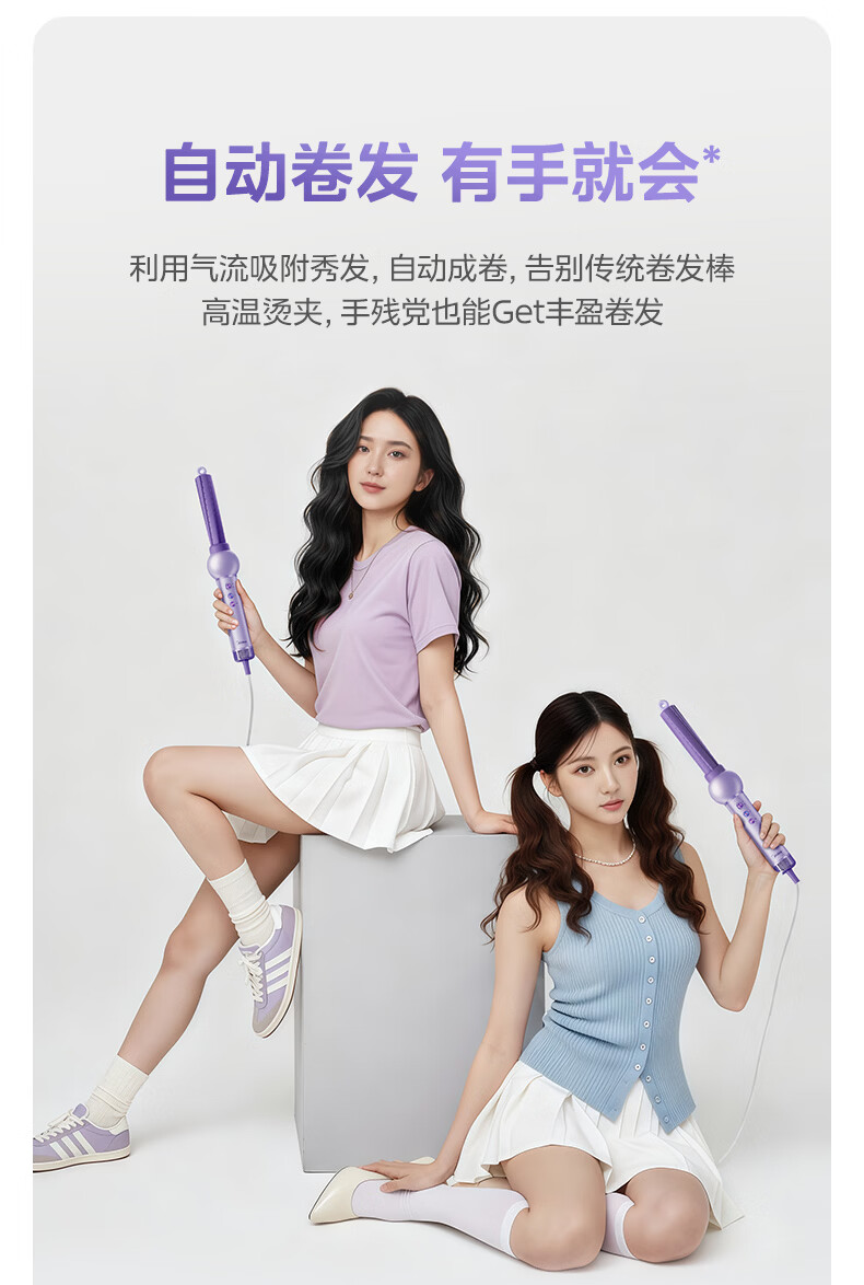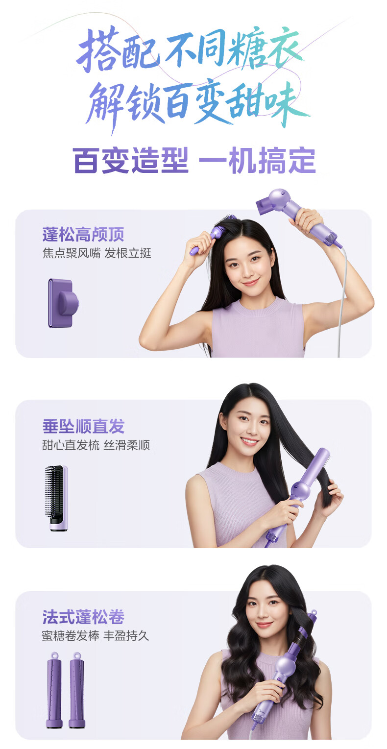 蓬松高颅顶焦点聚风嘴 发根立挺;垂坠顺直发甜心直发梳 丝滑柔顺;法式蓬松卷蜜糖卷发棒 丰盈持久