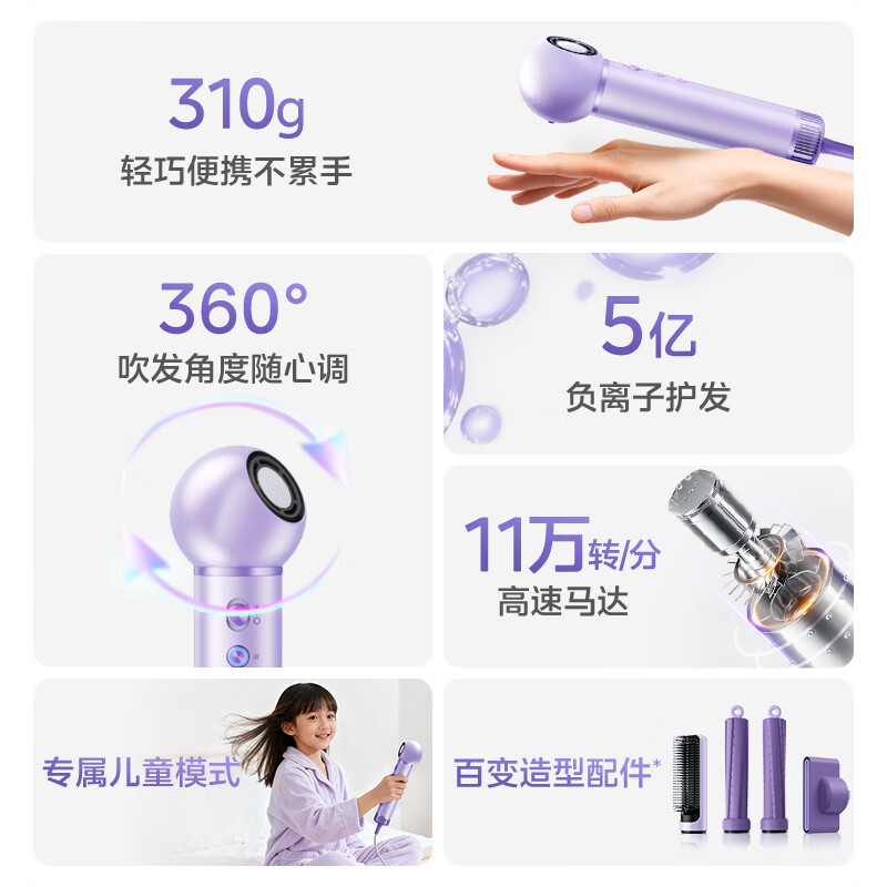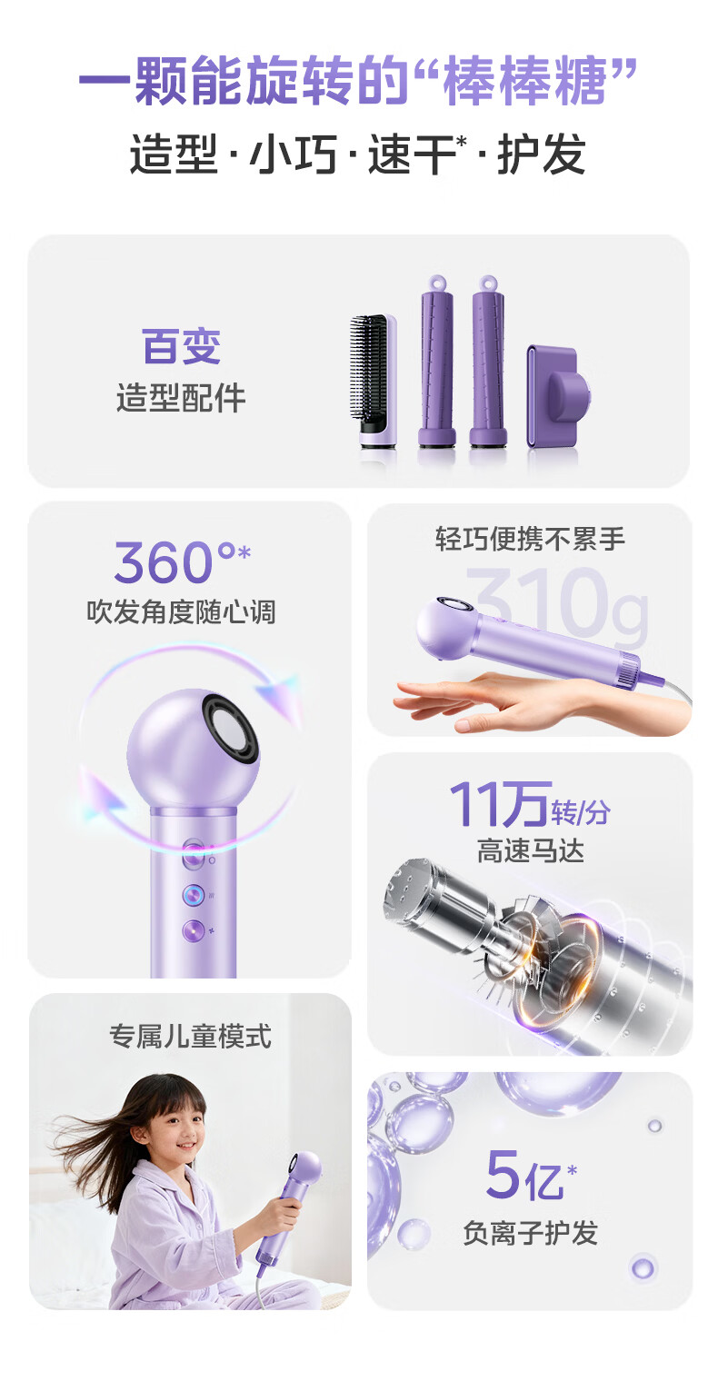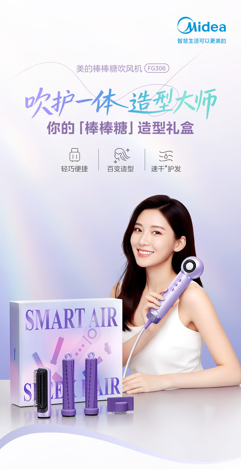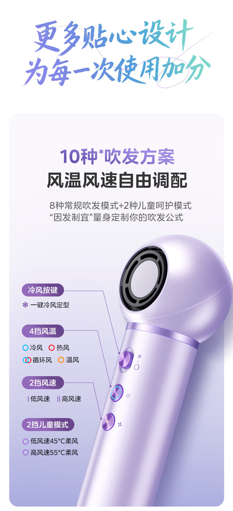 蓬松高颅顶焦点聚风嘴 发根立挺;垂坠顺直发甜心直发梳 丝滑柔顺;法式蓬松卷蜜糖卷发棒 丰盈持久