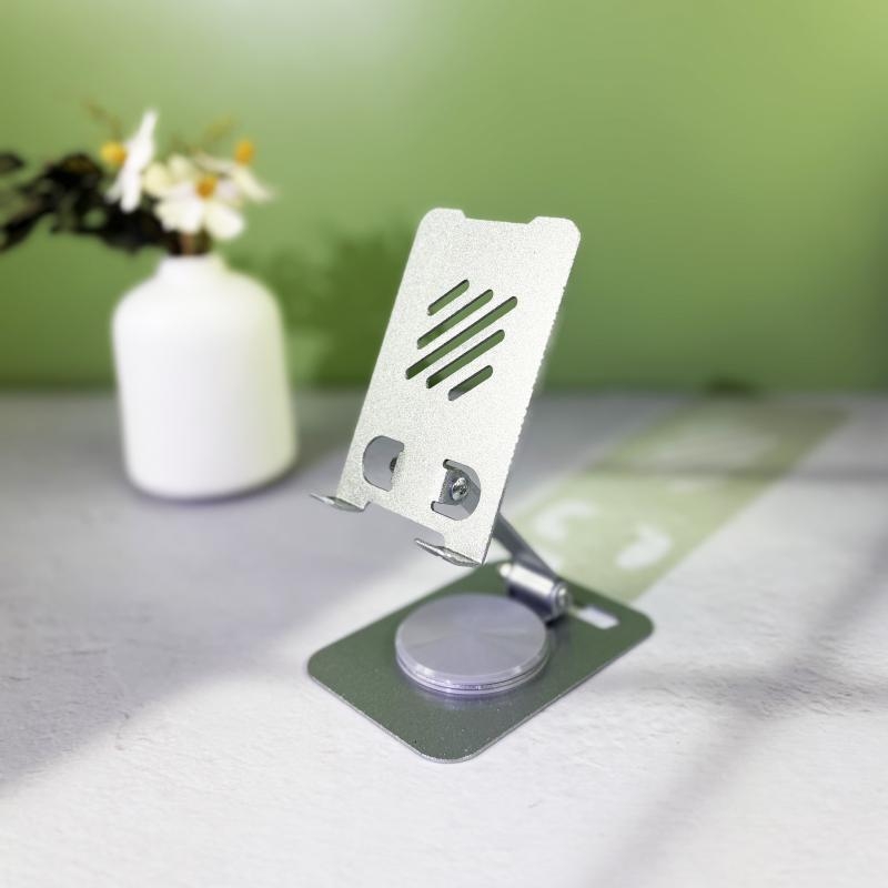 旋转金属手机支架材质:金属 颜色:银色 尺寸:9.5*13