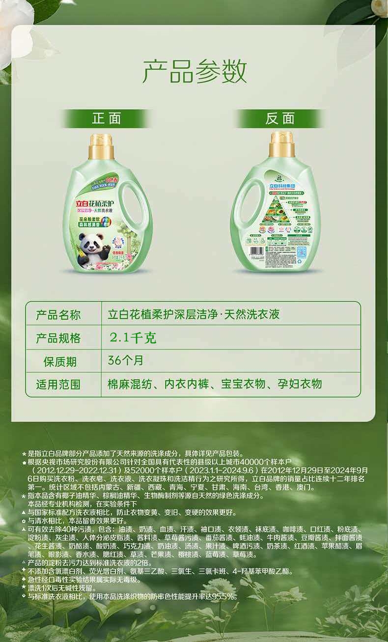 立白 花植柔护天然洗衣液2.1千克