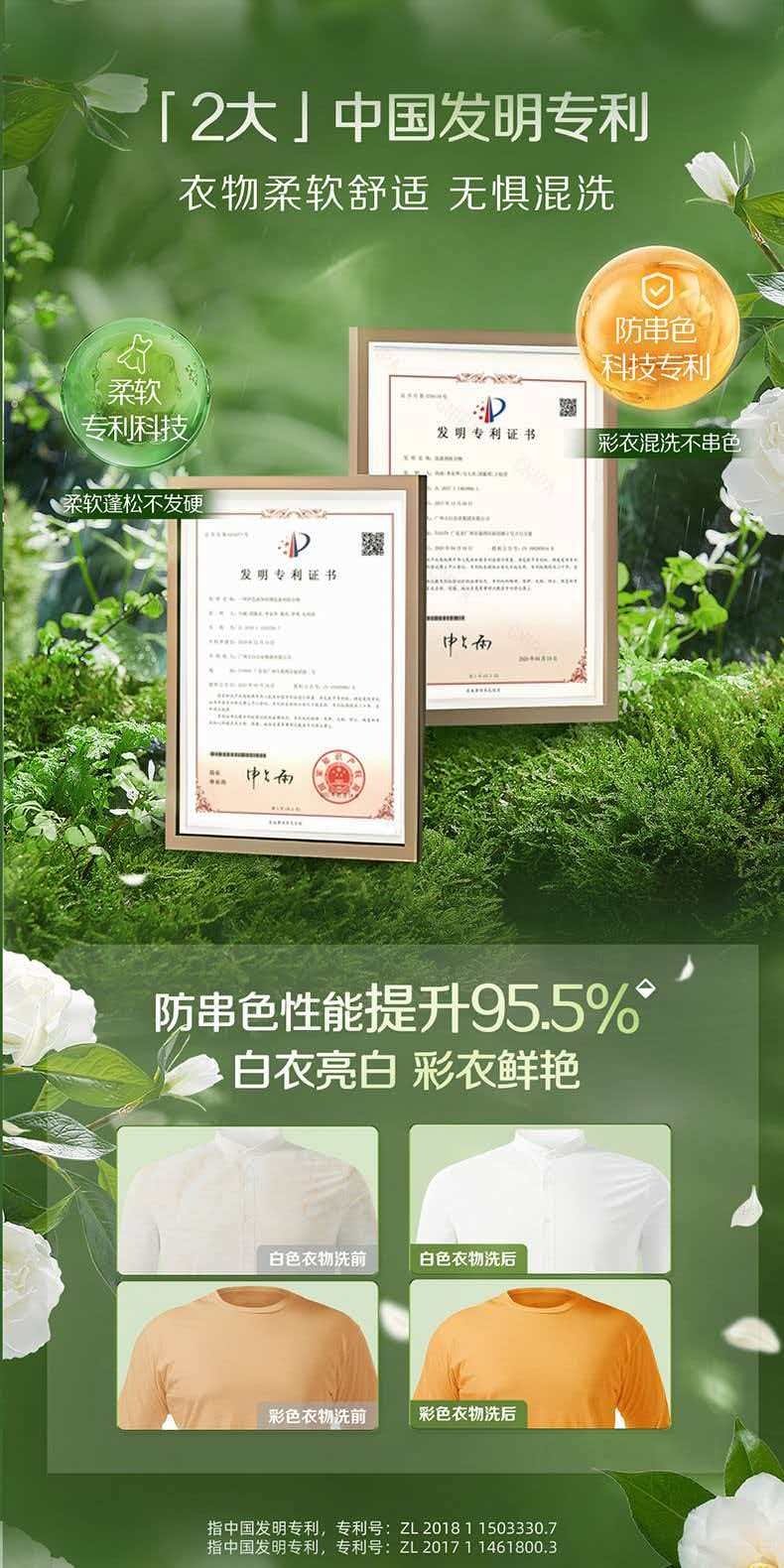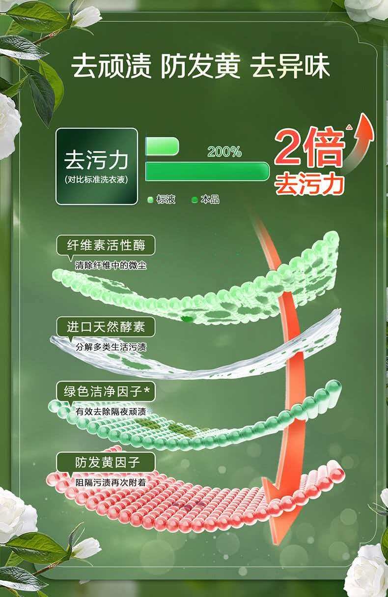 洁净更柔软 防发黄 护色增艳;持久清香 清新祛异味;适用范围:棉麻混纺、内衣内裤、宝宝衣物、孕妇衣物