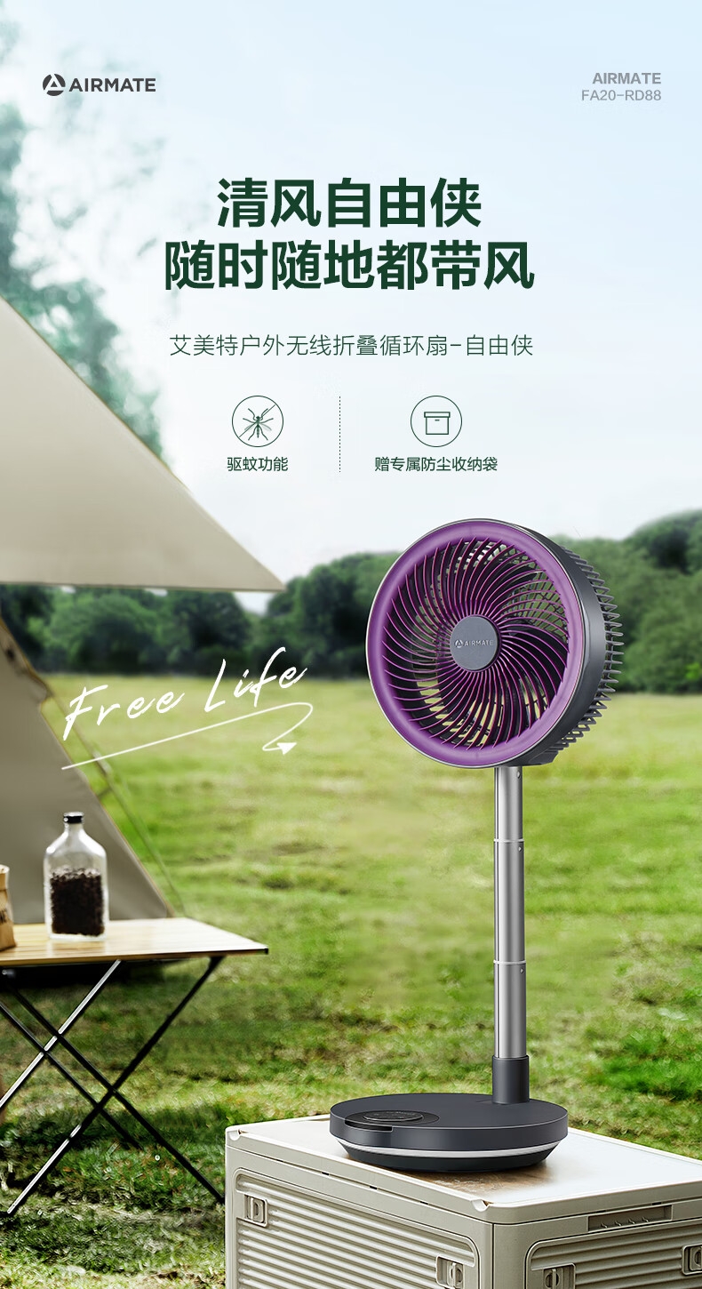 艾美特 充电遥控伸缩折叠空气循环扇FA20-RD88