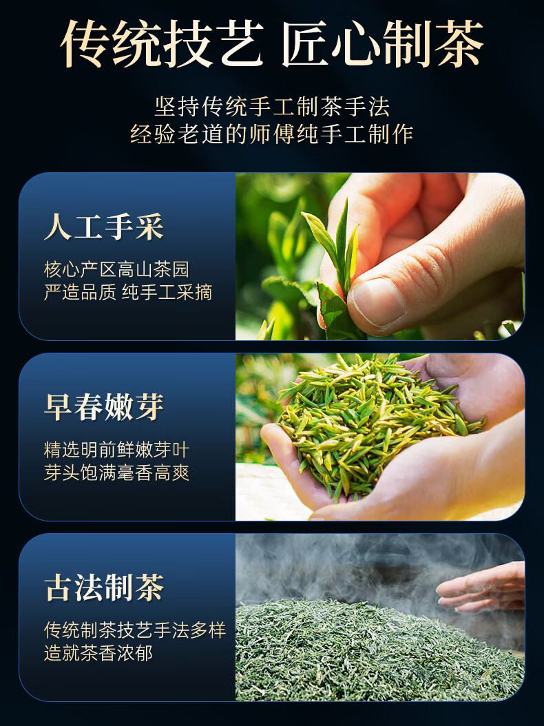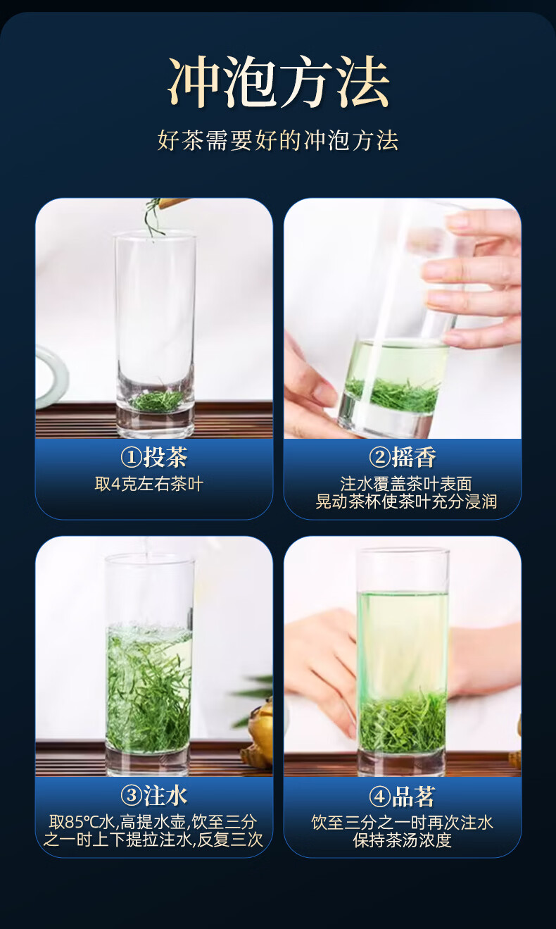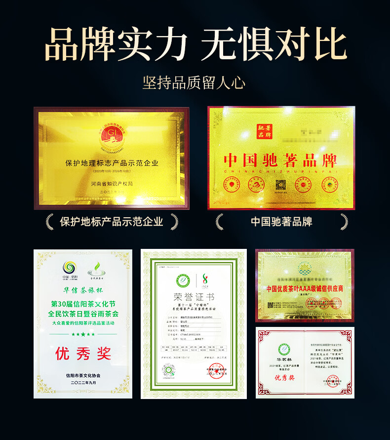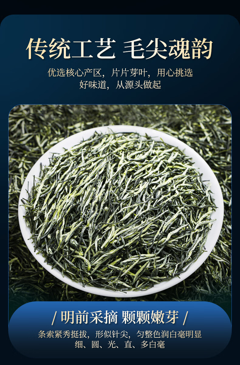 源自信阳毛尖核心产区,芽叶肥壮,叶面光润油亮;香气浓郁,滋味醇厚,回甘迅猛,口感丰富,耐泡性强;国风雅致经典四合一礼盒包装,待客,送礼都很合适