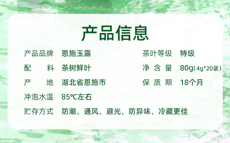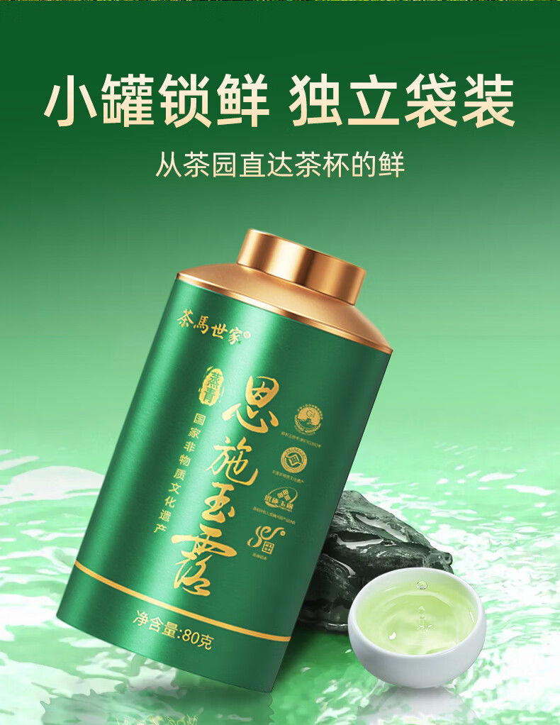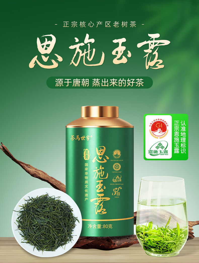 茶马世家 特级恩施玉露小泡袋寻味绿80gTBLZ0080XW