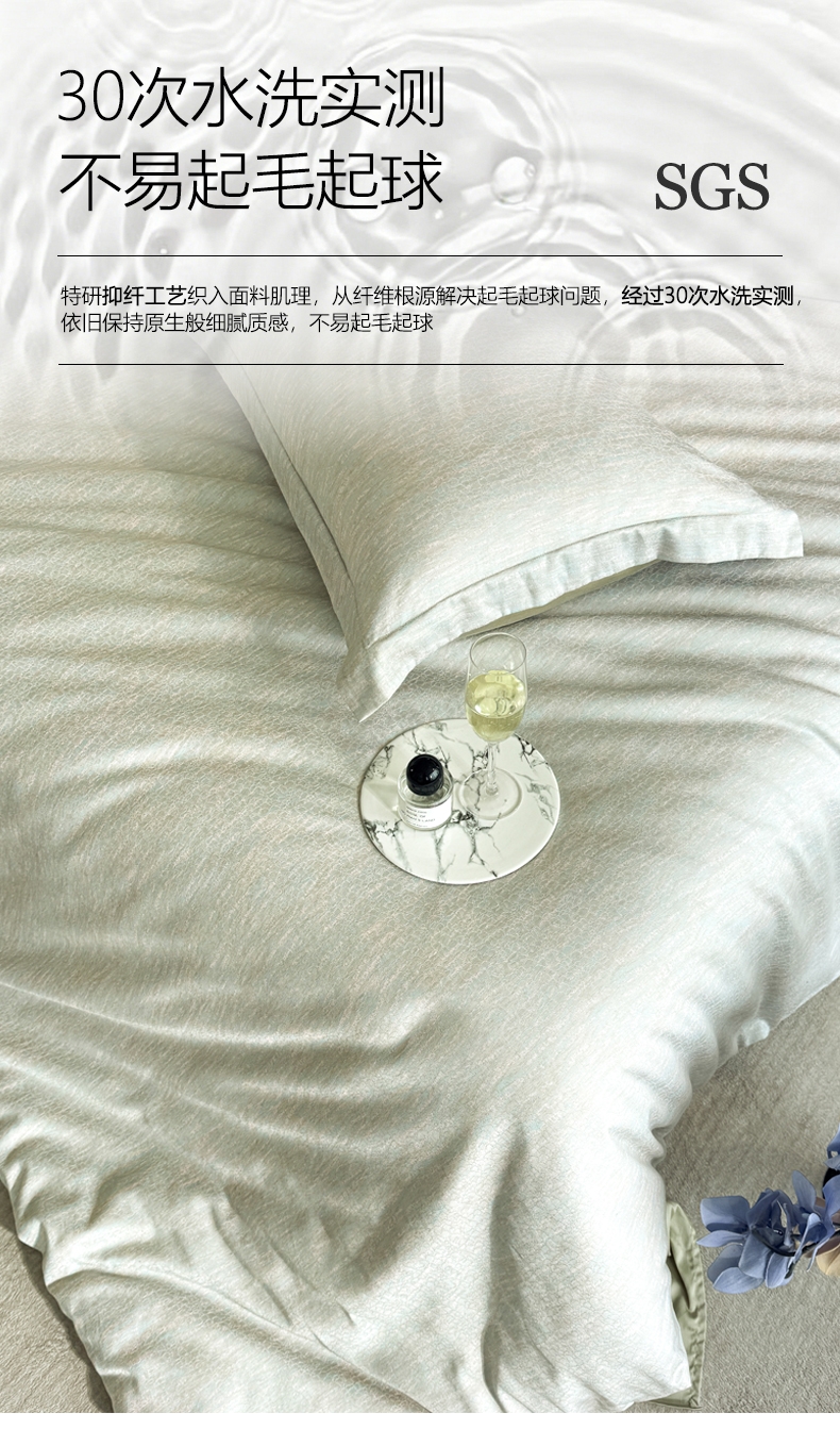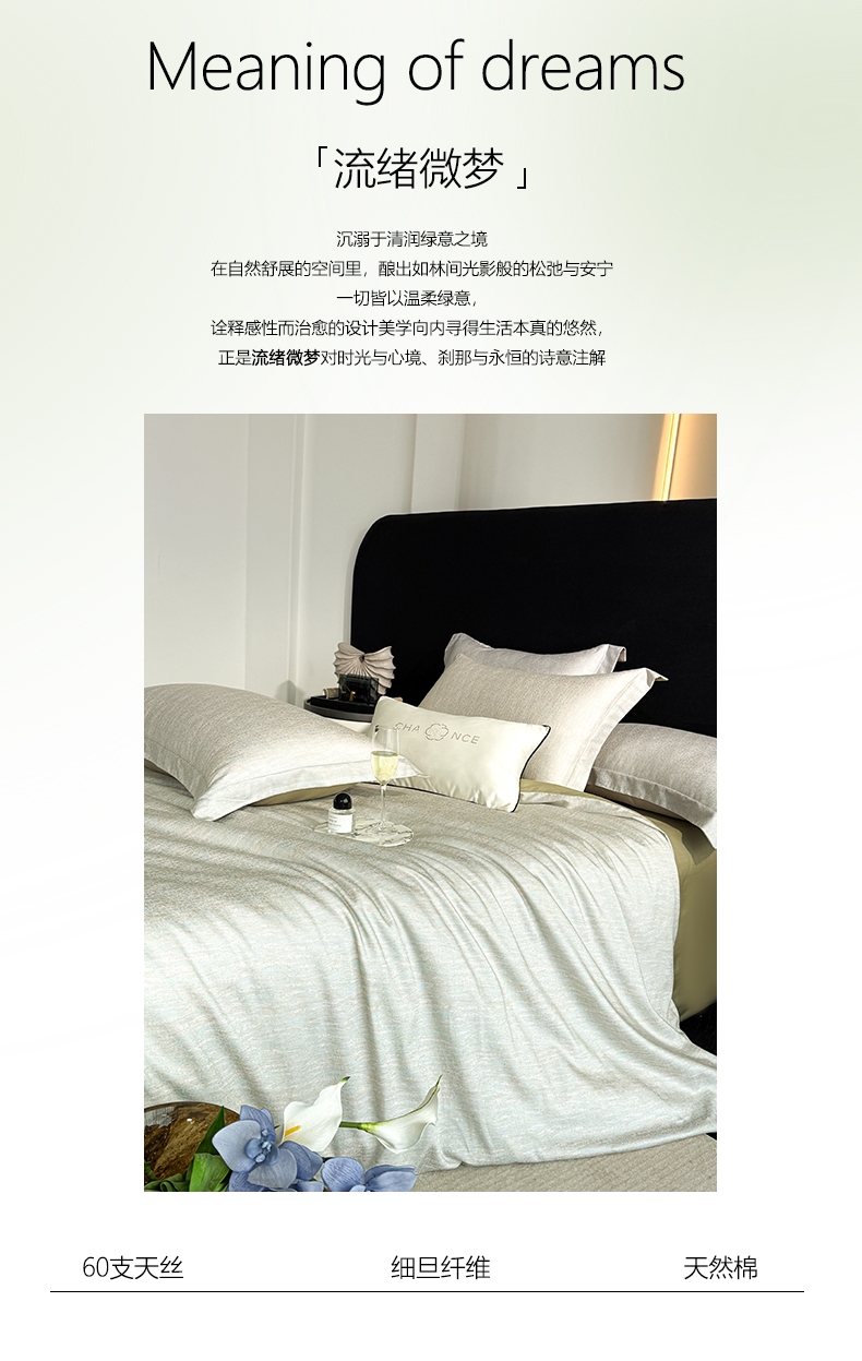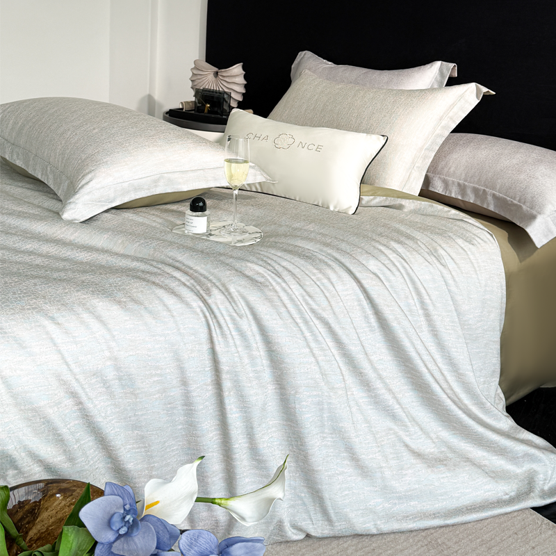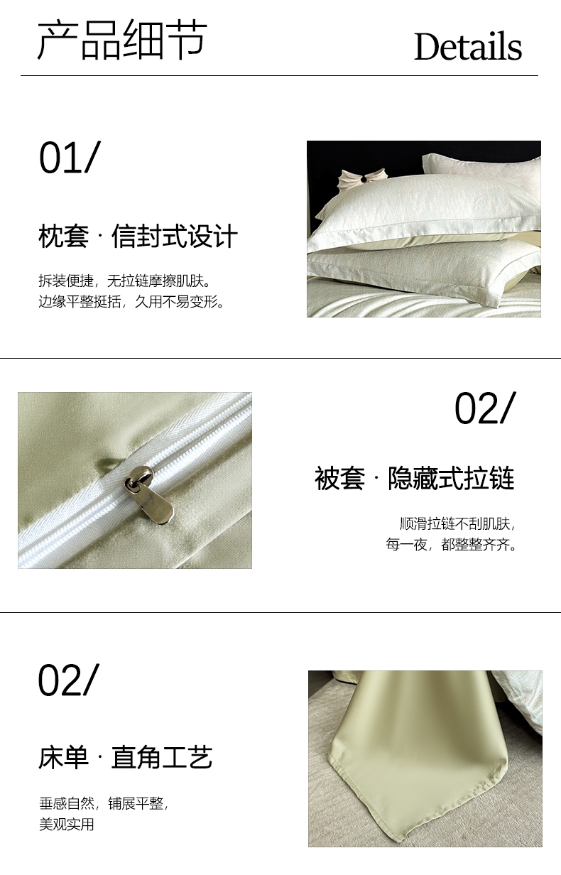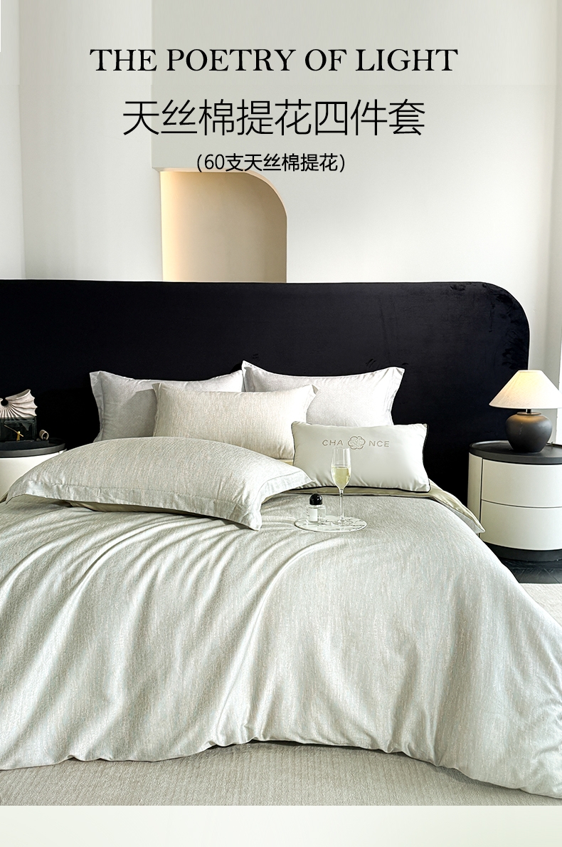 采用天丝棉面料;A版采用独特的天丝棉提花+亮丝镶嵌;更显高端大气