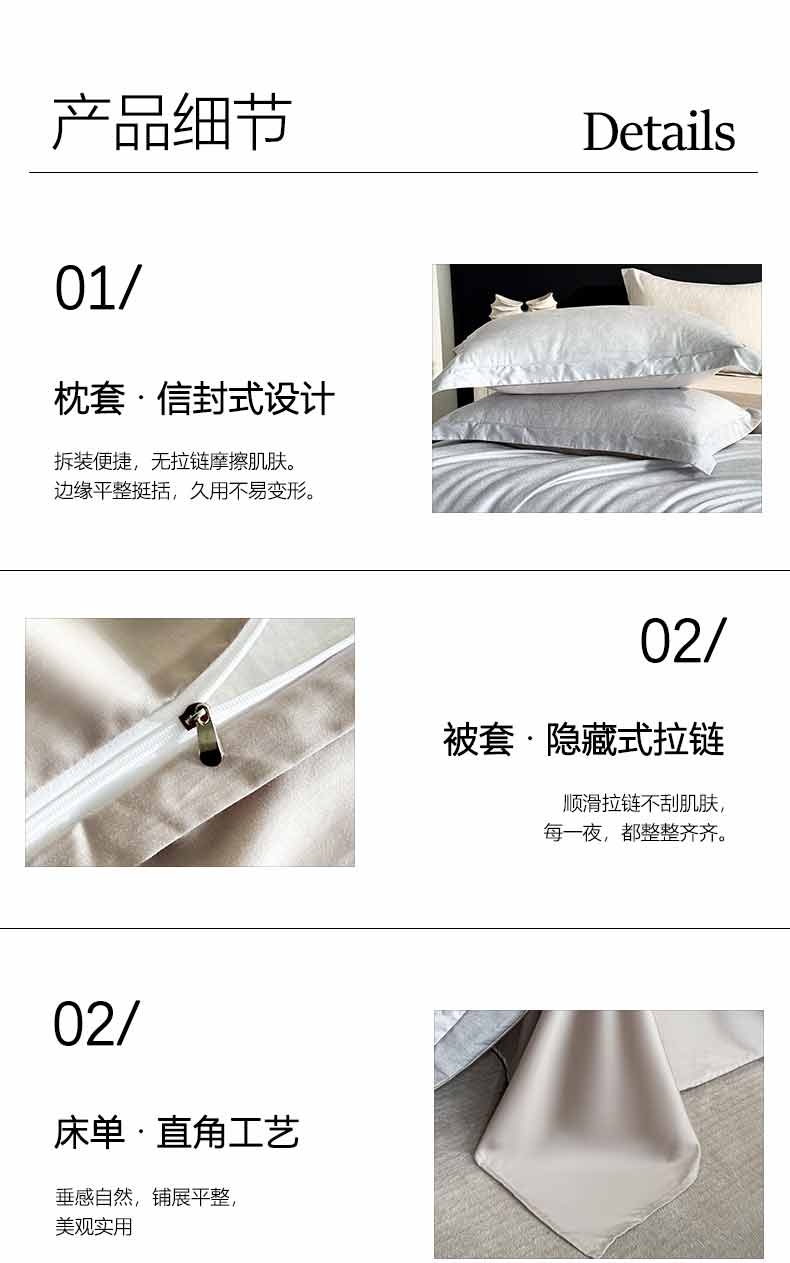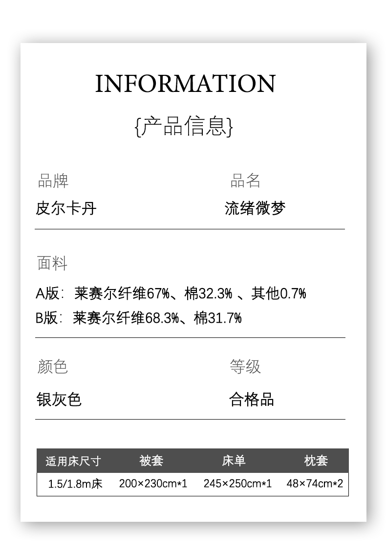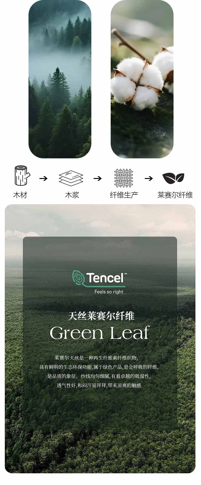 采用天丝棉面料;A版采用独特的天丝棉提花+亮丝镶嵌;更显高端大气