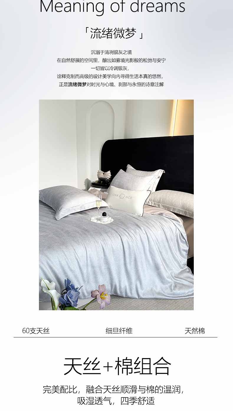 皮尔卡丹 60支天丝四件套流绪微梦银灰