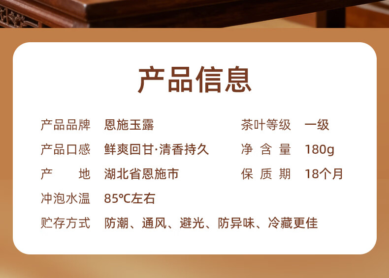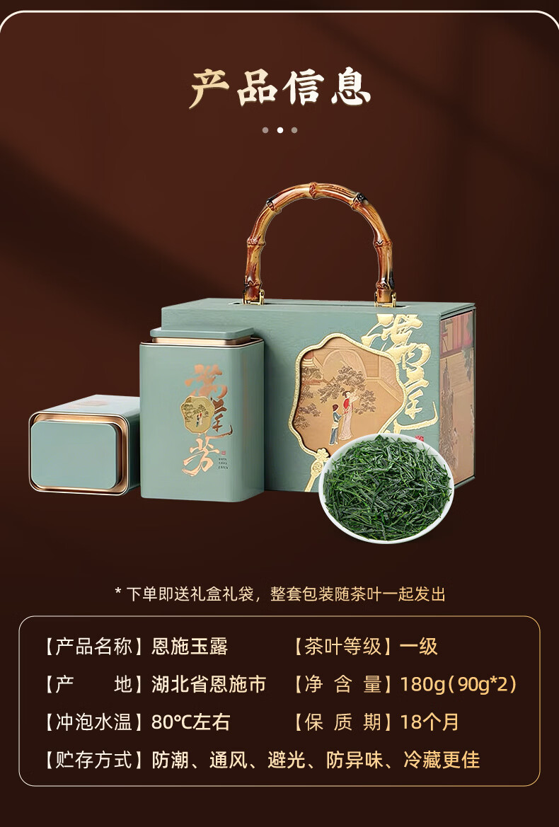 茶马世家 恩施玉露一级盒装满庭芳180gJDLZ0180TF