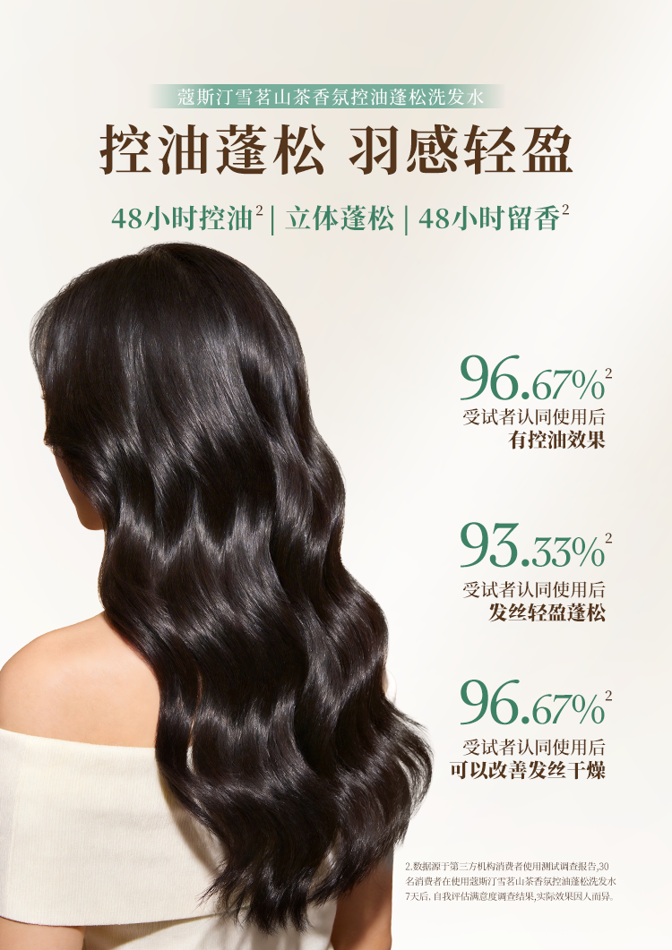 控油蓬松 羽感轻盈;48小时控油; 立体蓬松