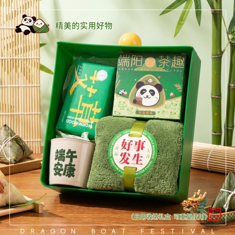组合:端午安康主人杯*1、韩方莉艾草植萃皂*1、端午经典绿茶2g*2袋、好事发生毛巾35*74CM、抽屉收纳礼盒*1
