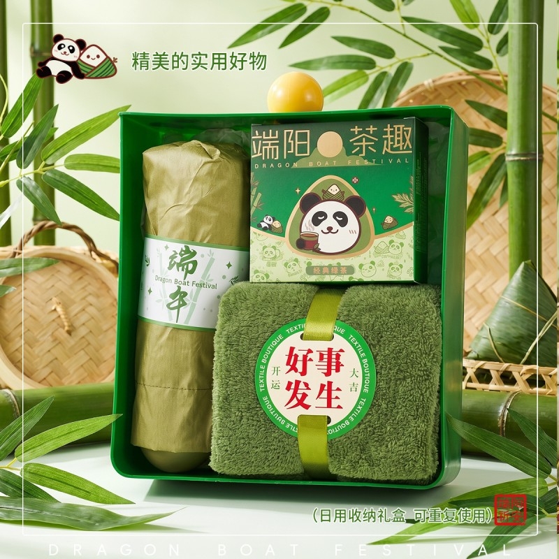 组合:胶囊防晒伞*1、端午经典绿茶2g*2袋、好事发生毛巾35*74CM、抽屉收纳礼盒*1