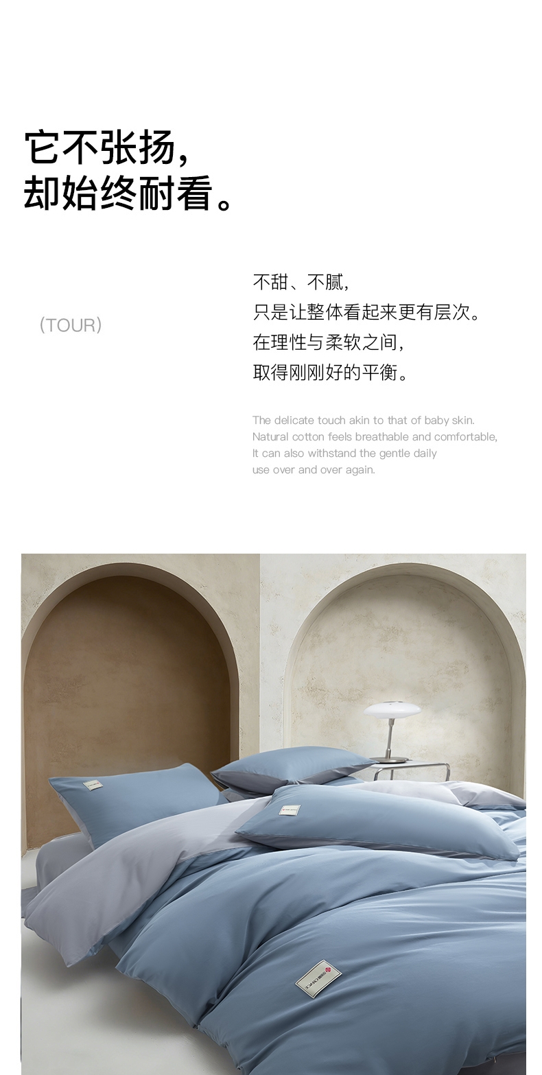 甄选全棉为原料;以高密缎纹工艺织就简约而不简单的品质生活;能消除异味、避免细菌繁殖,降低细菌传播风险,耐水洗
