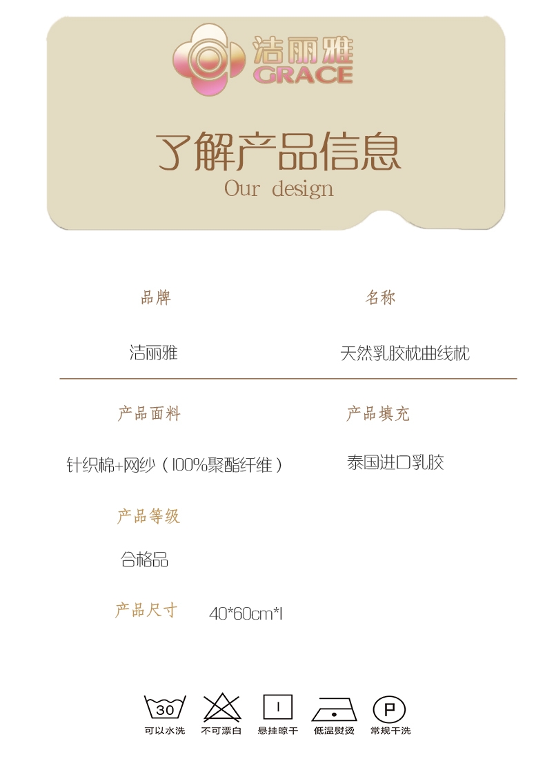 洁丽雅 天然乳胶枕曲线枕CP3169