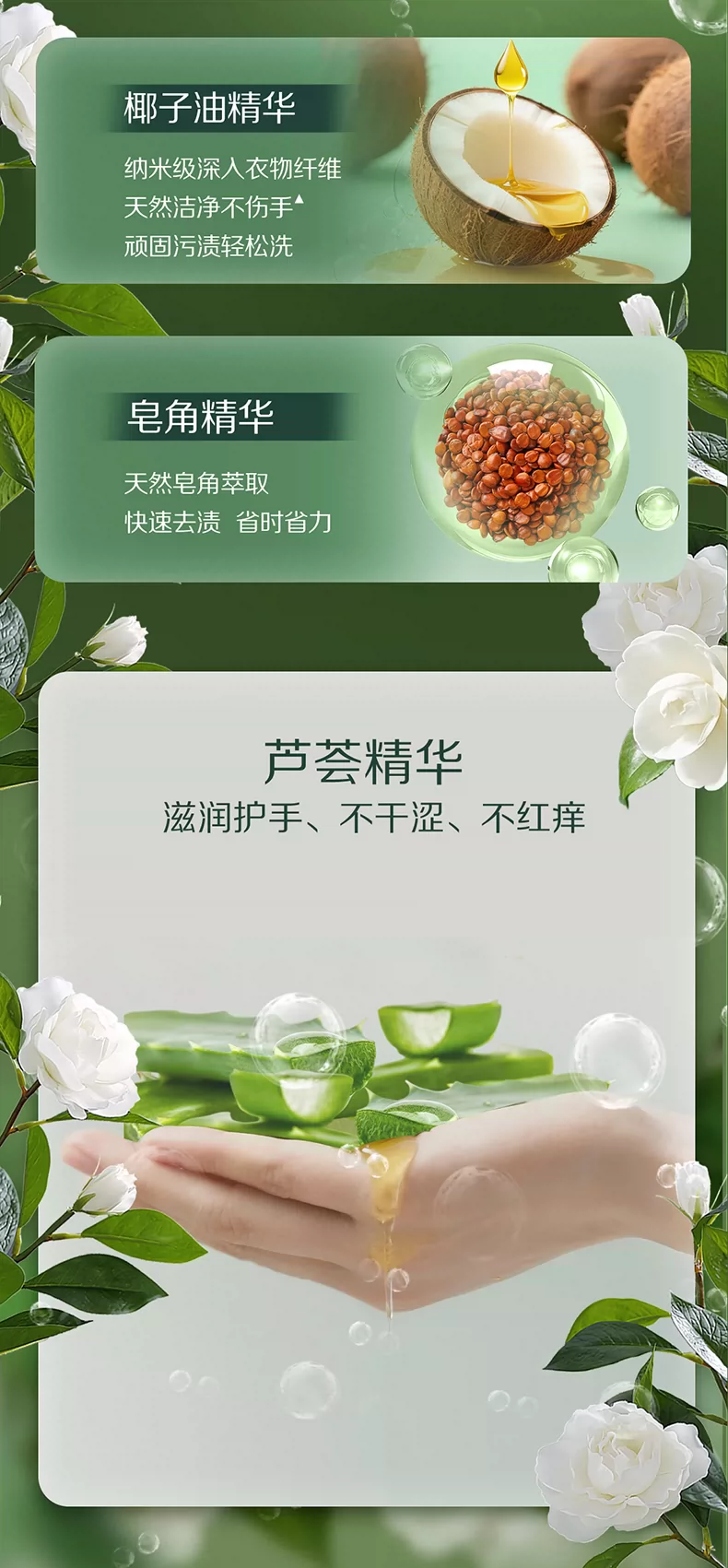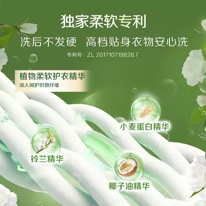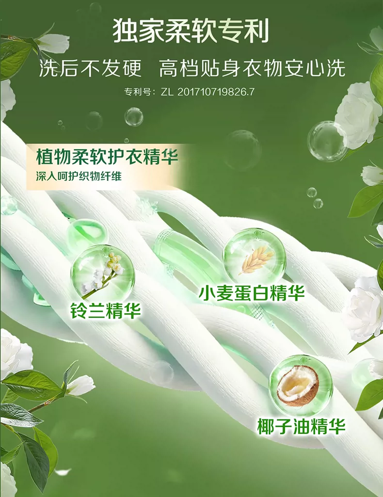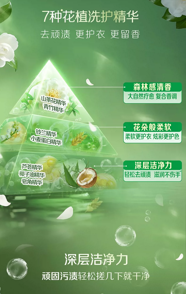产品功效:山茶花与青竹香氛,护色护衣 深层洁净