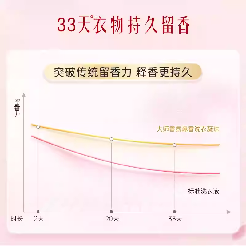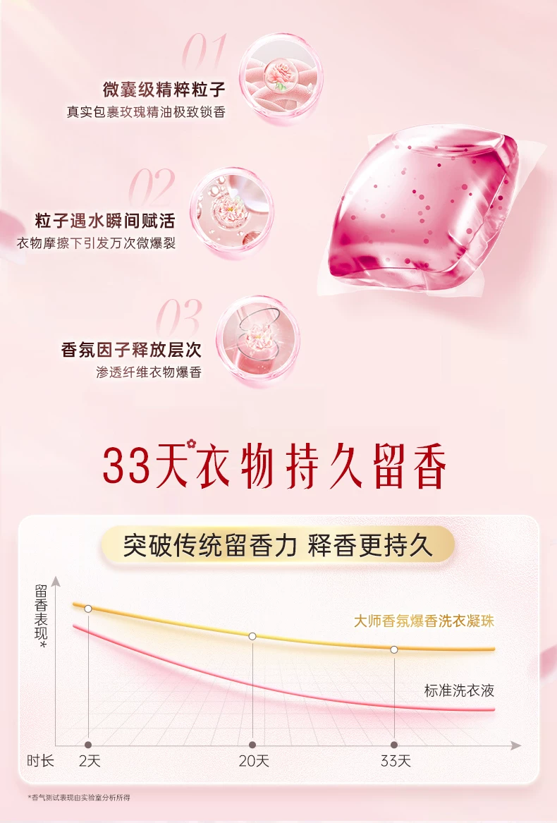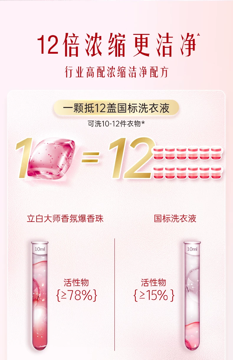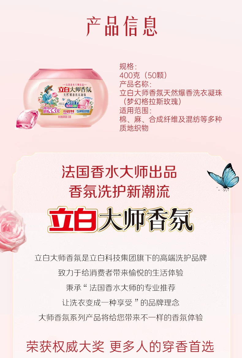 6效合1:33天留香、12倍浓缩更洁净;6大异味祛除、纳米级护色科技;亲肤抗静电、柔顺不发硬;15分钟快洗无残留