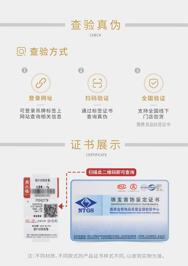 配置清单:周六福红色礼盒*1 周六福红色礼袋*1 售后服务手册*1 鉴定证书*1 品牌标签*1