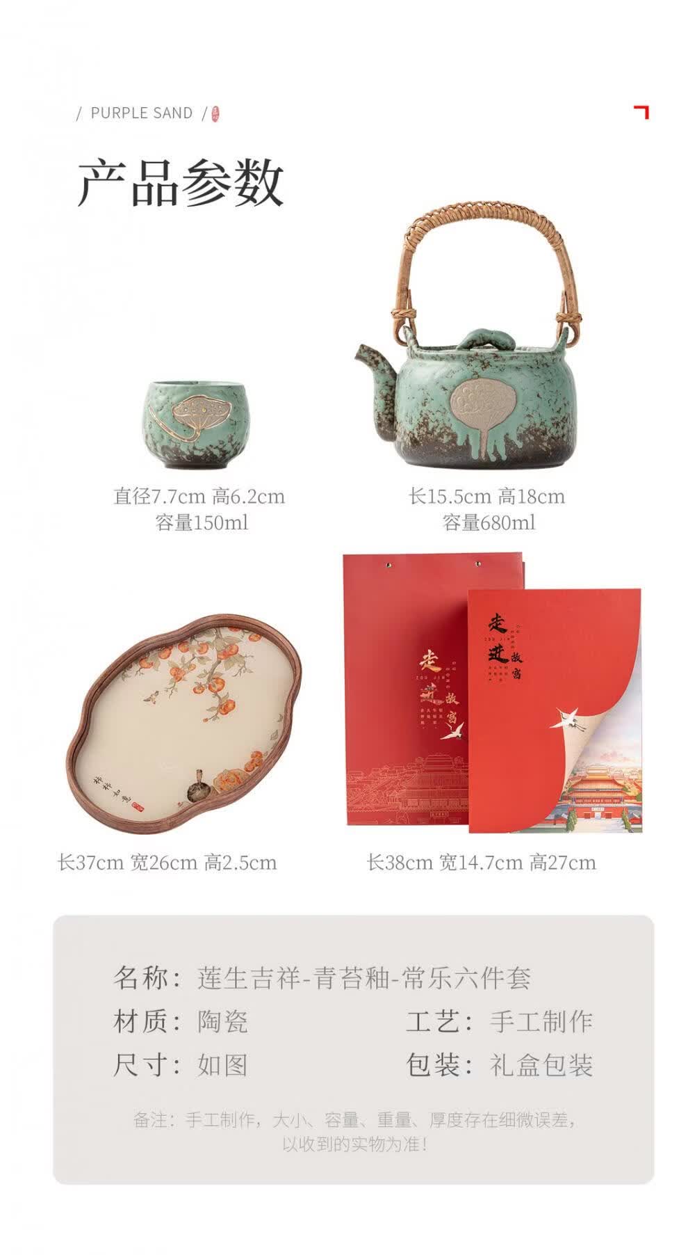 配置清单:1壶,4杯,1茶盘,礼盒