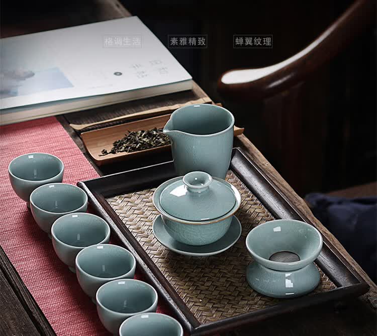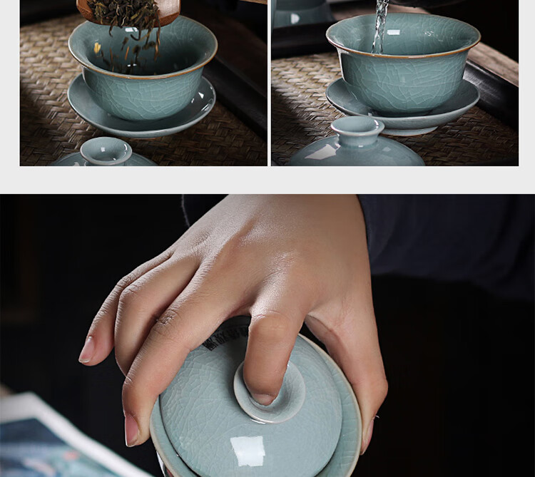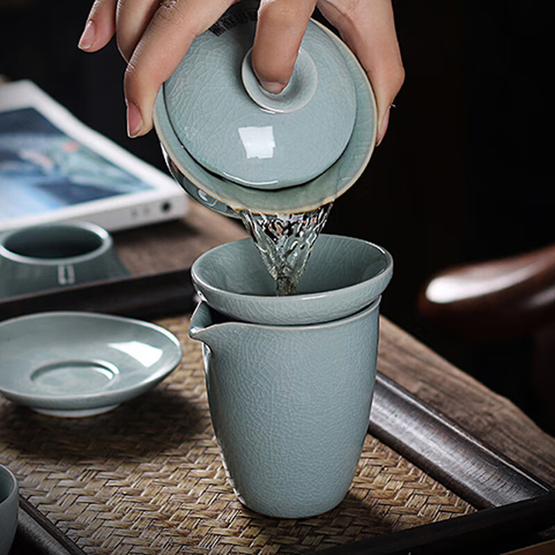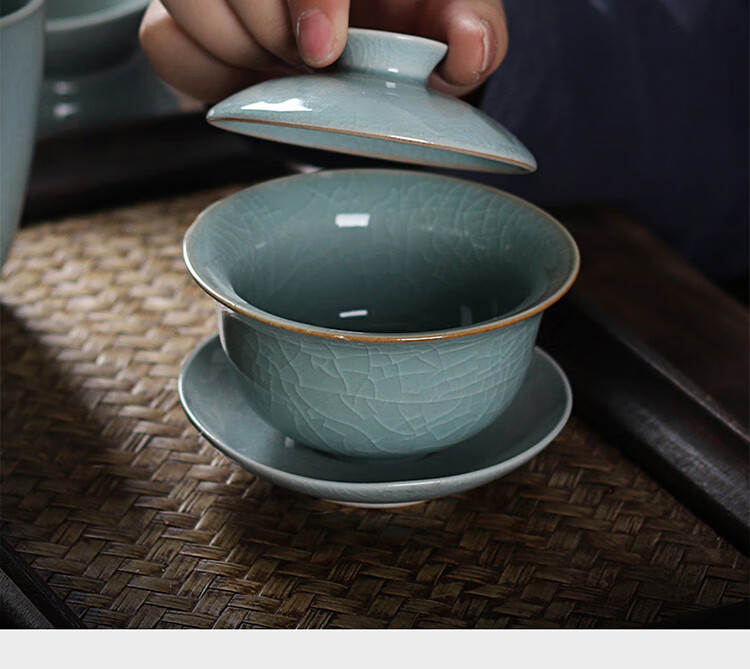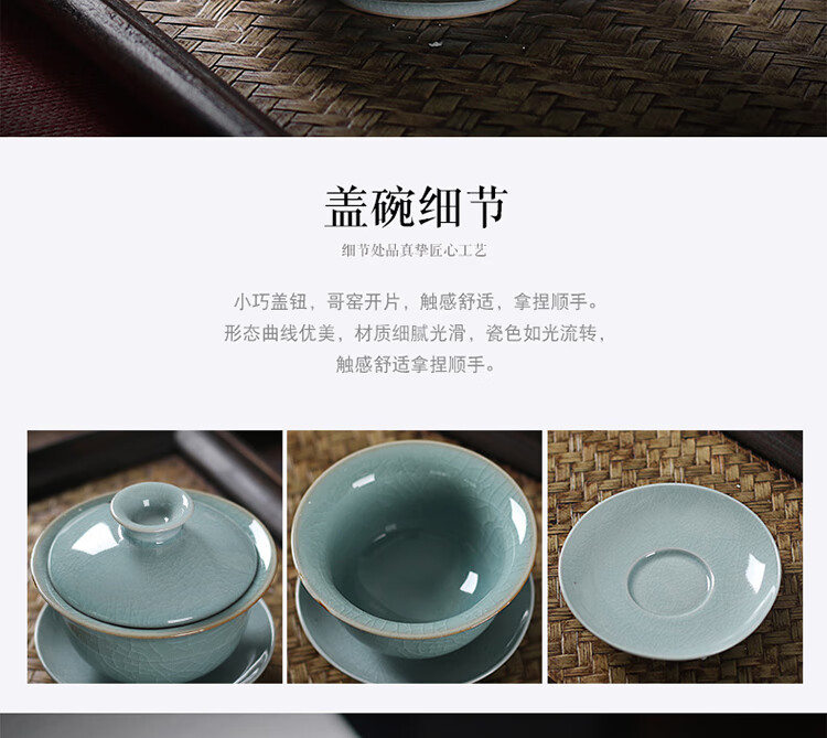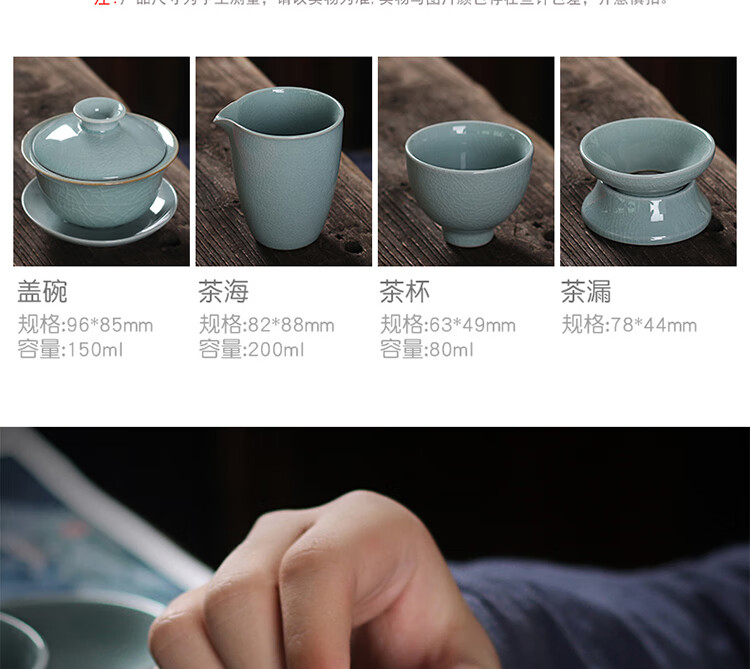 配置:盖碗1个,茶海1个,茶漏1对,茶杯6个