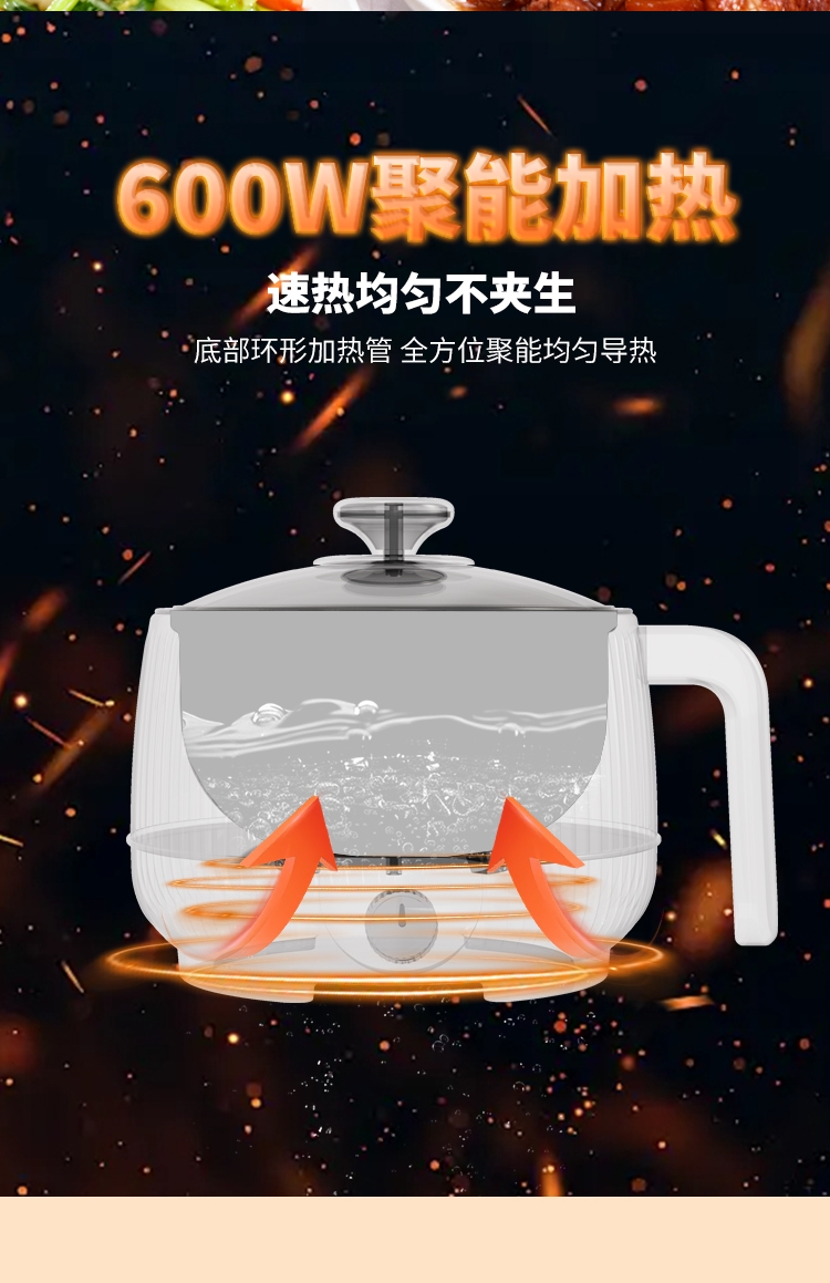 电热火锅功能:蒸,炒,炸,煎,煮,炖,焖,火锅,煮面,煲汤
