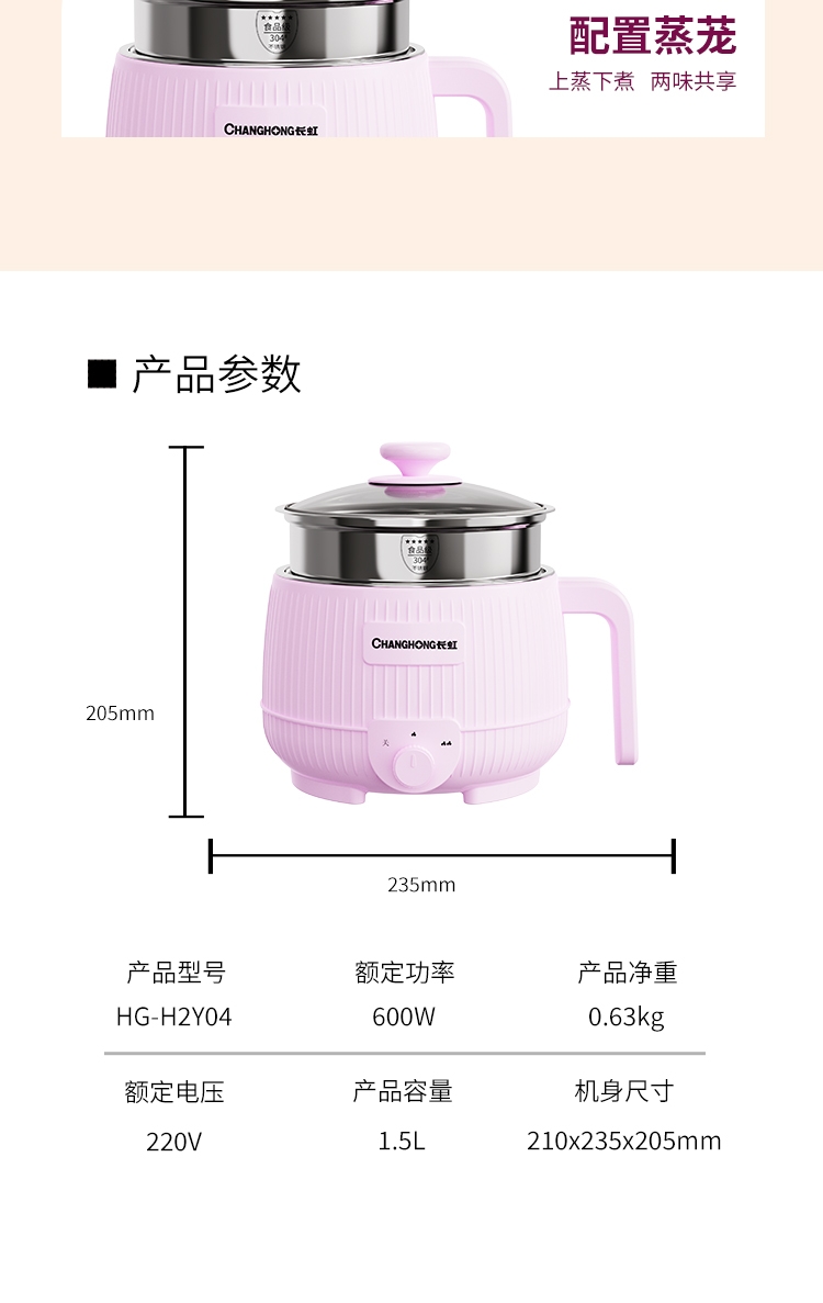长虹 多功能电火锅带蒸笼1.5LHG-H2Y04