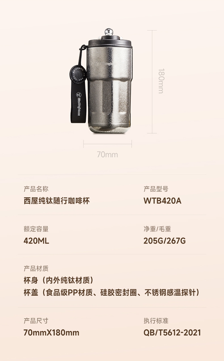 西屋 纯钛保温杯420mlWTB420A
