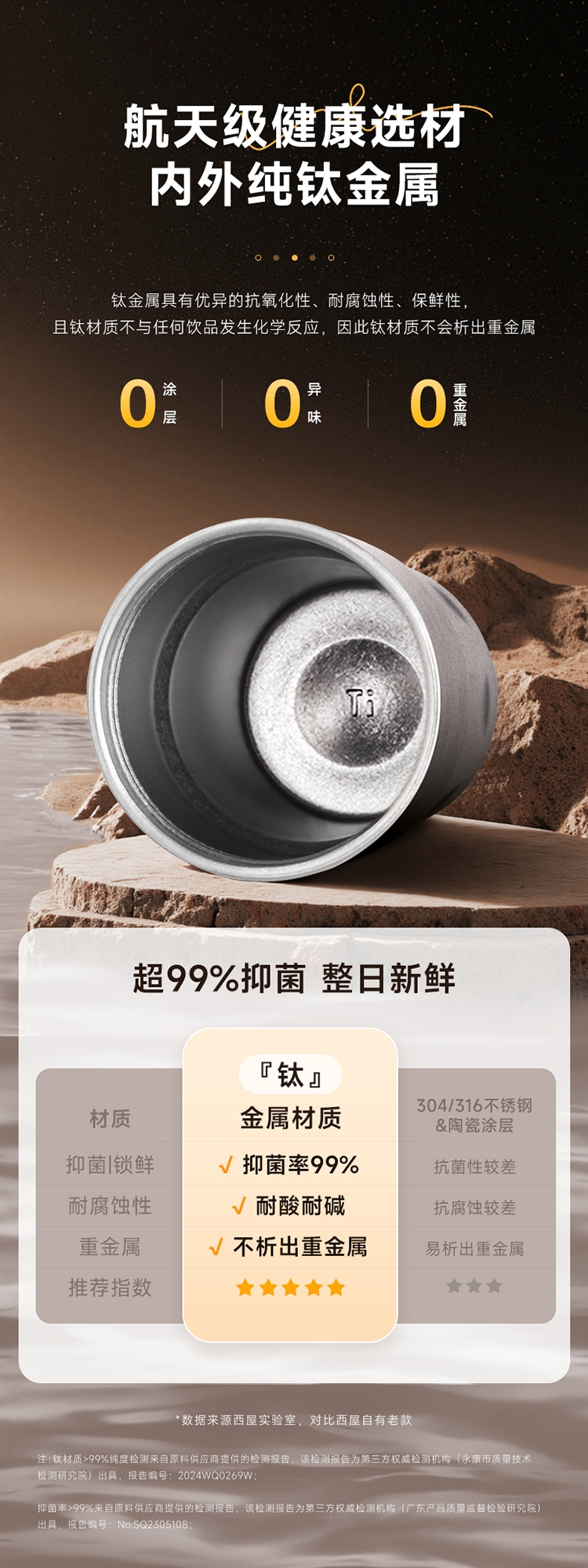 杯身:内外纯钛,含钛量>99%