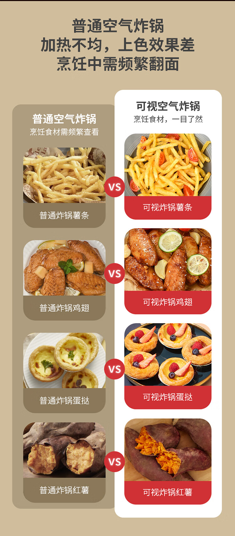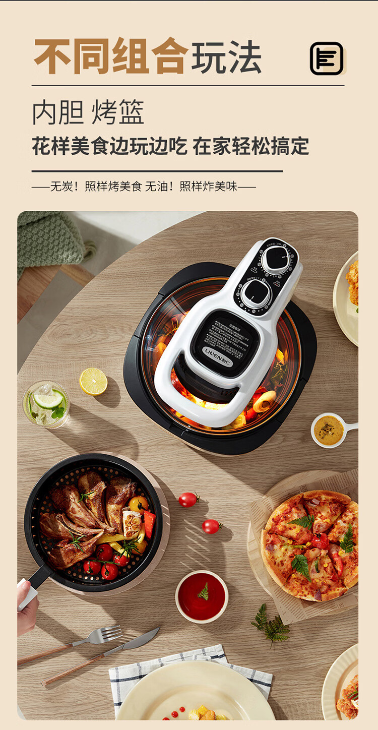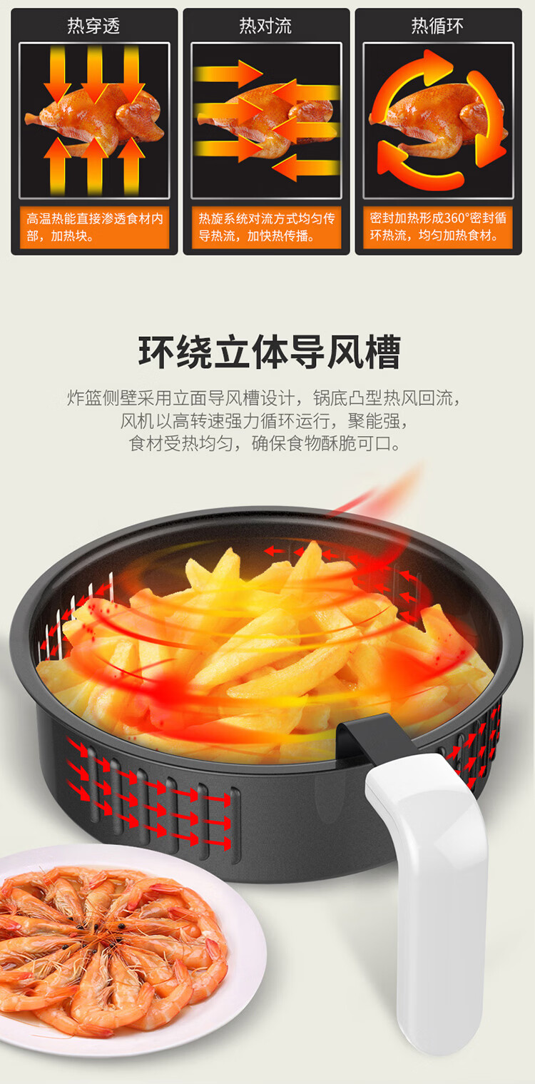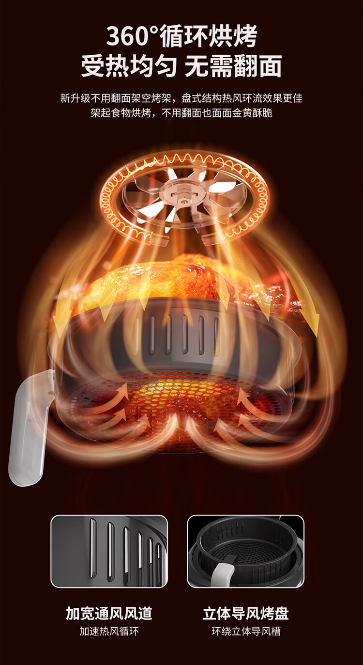 可视窗口 免翻面 大容量;循环热风 加热均匀 ;烘焙 烤制 煎炸 烧烤