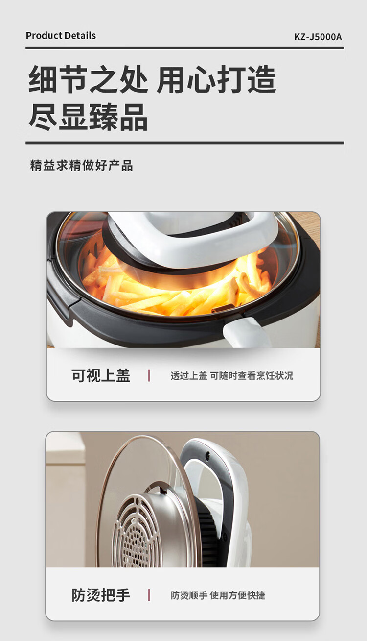 利仁 空气炸锅家用5升智能菜单KZ-D5007