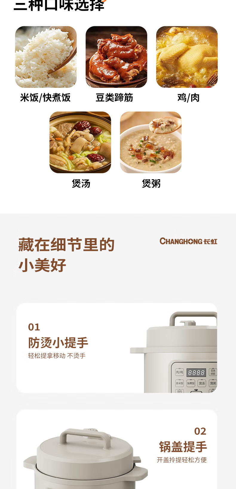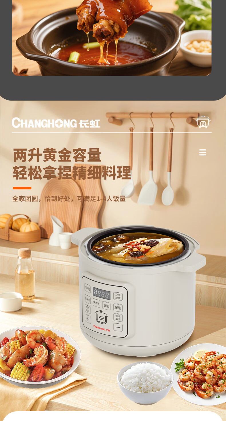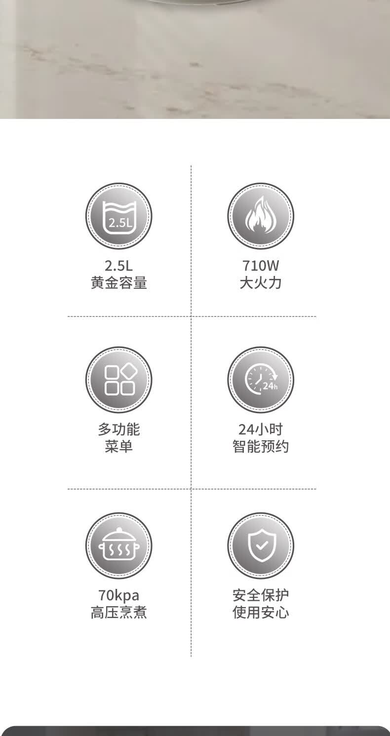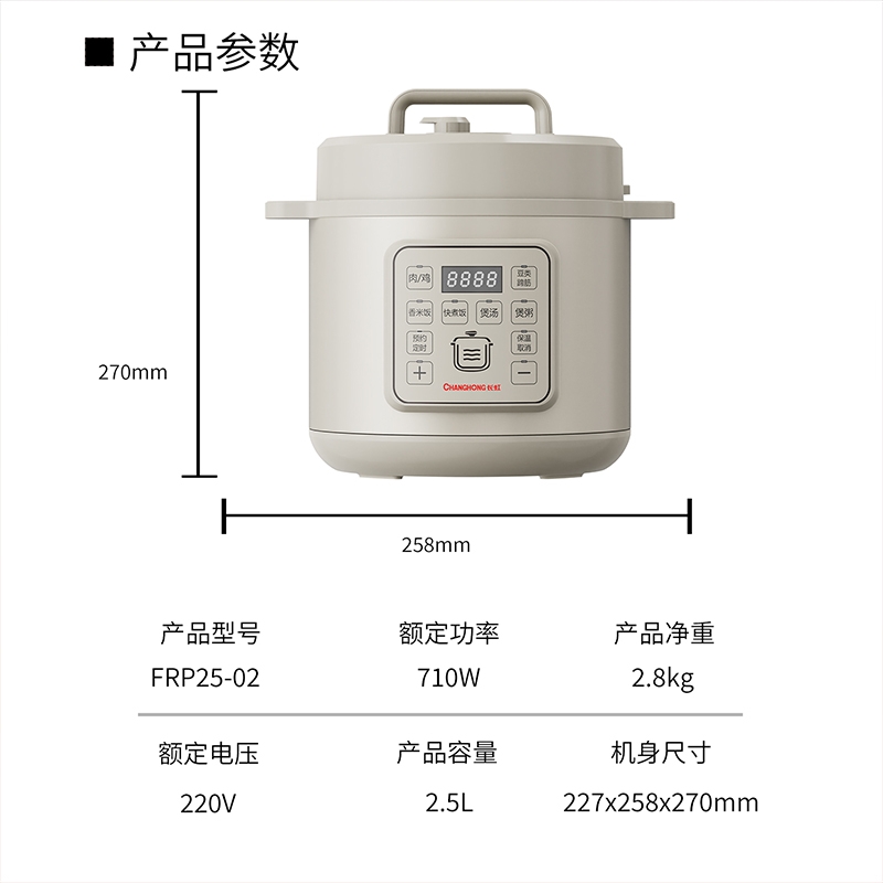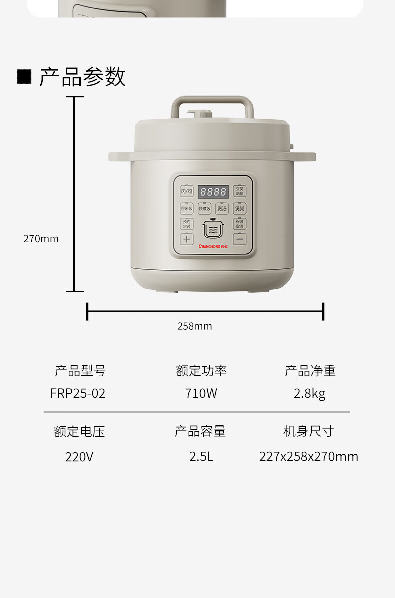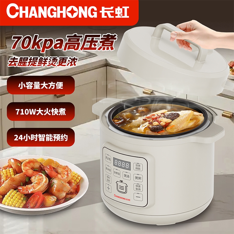 2.5L迷你全塑锅盖电脑多功能电压力锅;电脑4位数码显示,肉/鸡,豆类蹄筋,香米饭;双喷铝胆,导热快,清洗方便。;快煮饭,煲汤,煲粥,定时预约,保温取消,加减等功能