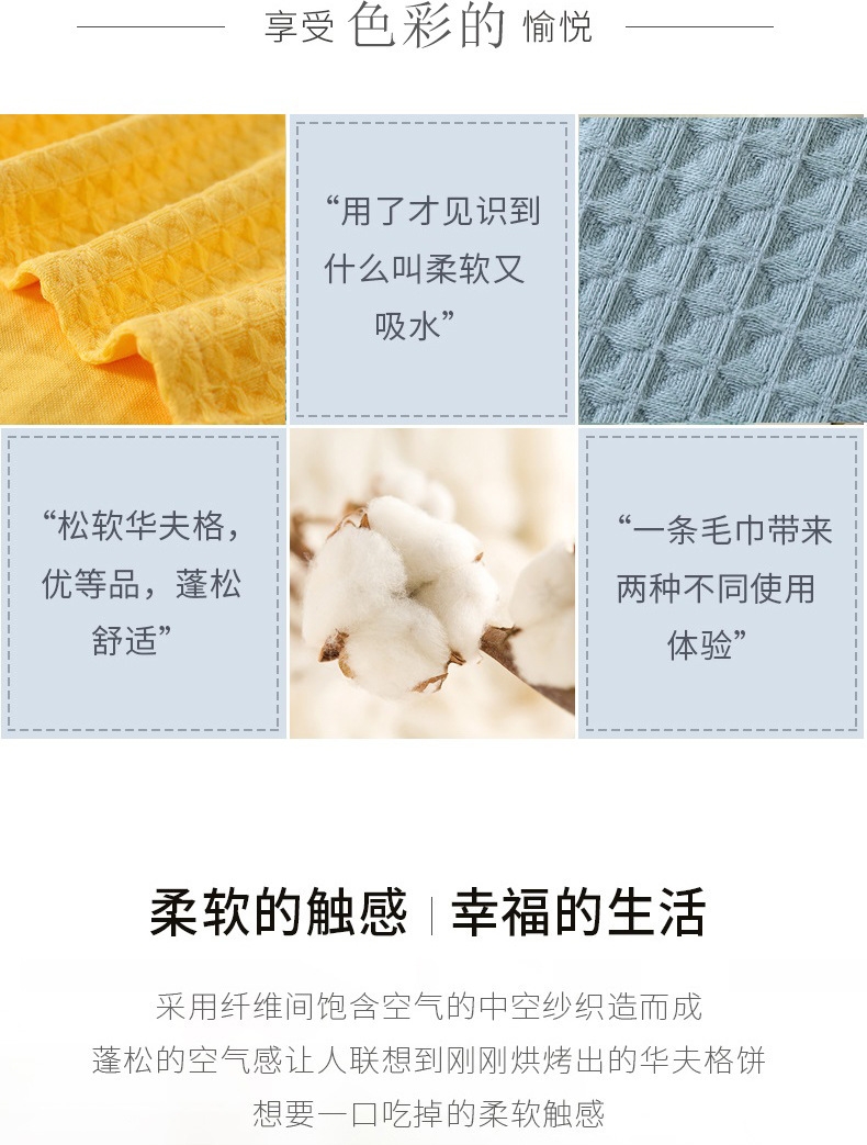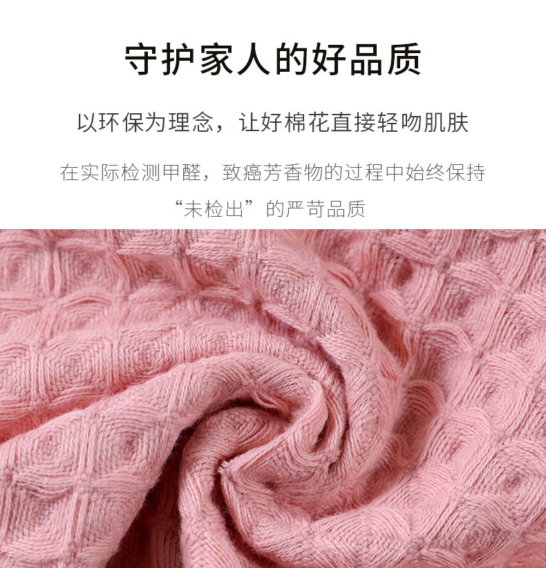 细腻柔软,亲肤不糙;吸水透气,干爽舒适;紧实耐用,不易掉毛
