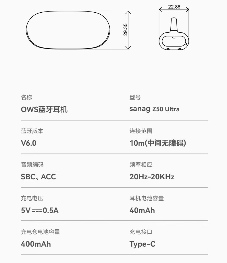 sanag塞那 开放耳夹式蓝牙耳机Z50 Ultra
